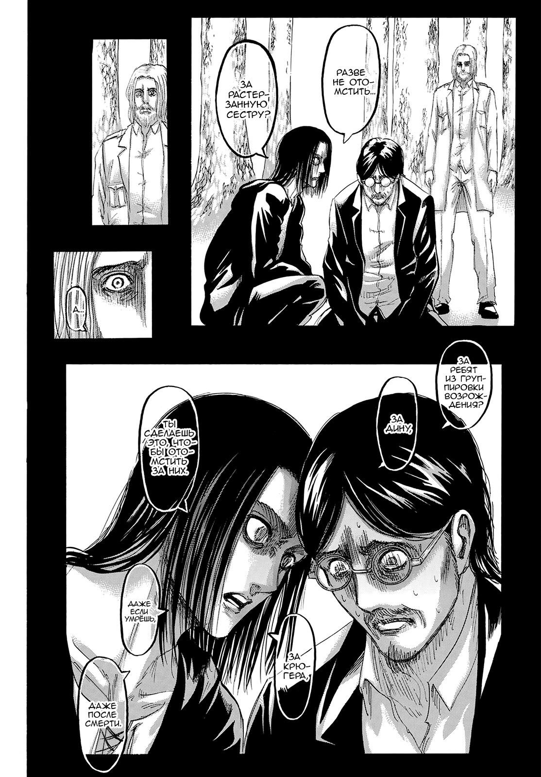 Боже мой... Да, тут прям все плохо. Какая месть? Вы о чем вообще? Эрен в финале - это полноценно повзрослевший персонаж, который имеет собственное мировоззрение и больше не зависит от прошлого. Он творит геноцид, потому что его народ в опасности. Какая месть? Вы, что несете? Где, такое в финальной арке вообще написано?