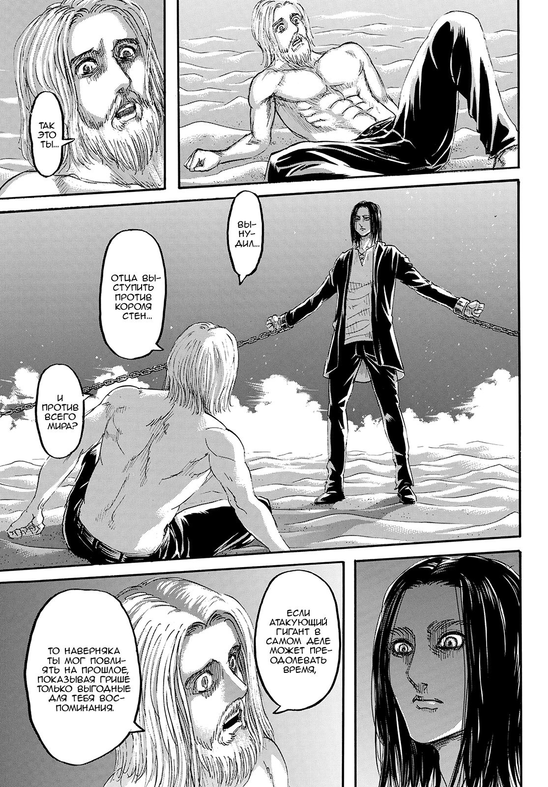 Серьёзно? Задолго до этих событий, когда на мир ещё можно было повлиять, Эрен вместо дельных занятий обеспечивал своё беспрепятсвенное становление. Скормил сестру отца собакам При этом воспитывая ненависть в Грише к народу Марли, дабы тот впоследствии вступил в "Возрождение Элдии". Далее пленение и казнь, но тут опять появляется Эрен который отдаёт Грише атакующего титана. Далее идёт тихая и неприметная жизнь, в которой Эрен через атакующего титана приказывает Грише что нужно делать(как он делал до этого). Эрен приказывает Грише напасть на прародителя, именно в тот момент когда была проломлена стена, дабы Дина(мать Зика) находящаяся там и ведомая Эреном напала и съела Карлу(мать Эрена). И всё это для того, чтобы зародить в ещё маленьком Эрене, чувство ненависти и мести, к тому что ответственно в гибели его матери, но по сути ответственен за это только он один.