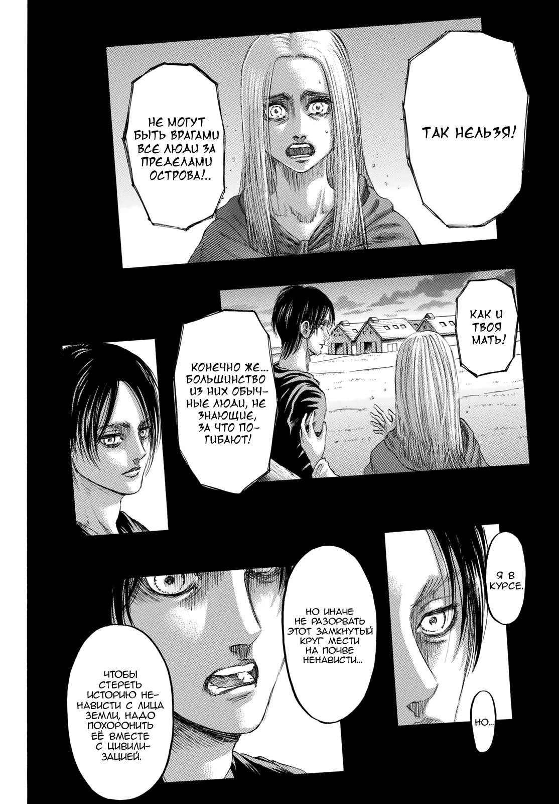 Эрен подтверждает что большинство людей находящихся за островом просто ничего не понимают. Но ему плевать, у него на пути в первую очередь личная свобода.