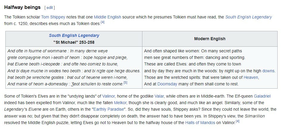 интересно тогда почему описания эльфов из работ толкиена так точно похожи на юго-английскую легенду из годов так 1200-х? Наверное толкиен побывал в прошлом и помог людям просветится