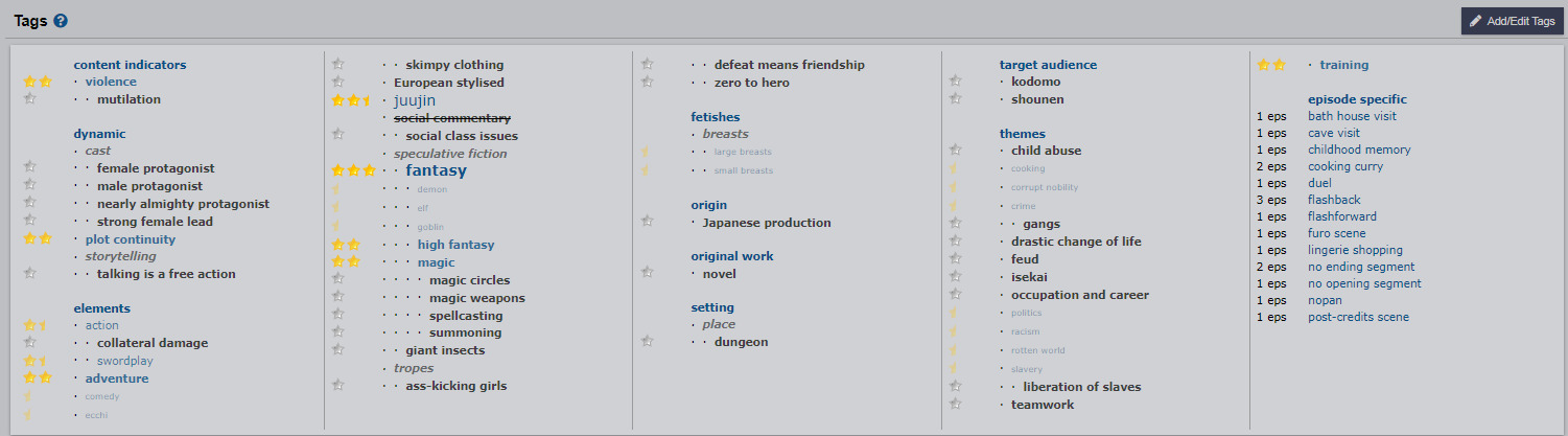 еще же есть коммьюнити анилиста и анидб и насколько я знаю там юзеры сами могут плюсануть или минусануть подходящий жанр/тег под тайтлом и это отобразится на его странице.Если так посмотреть, расстановка тегов - это столкновение двух мнений: МАЛа и Шики, причем Шики - это же старый МАЛ по привычке))