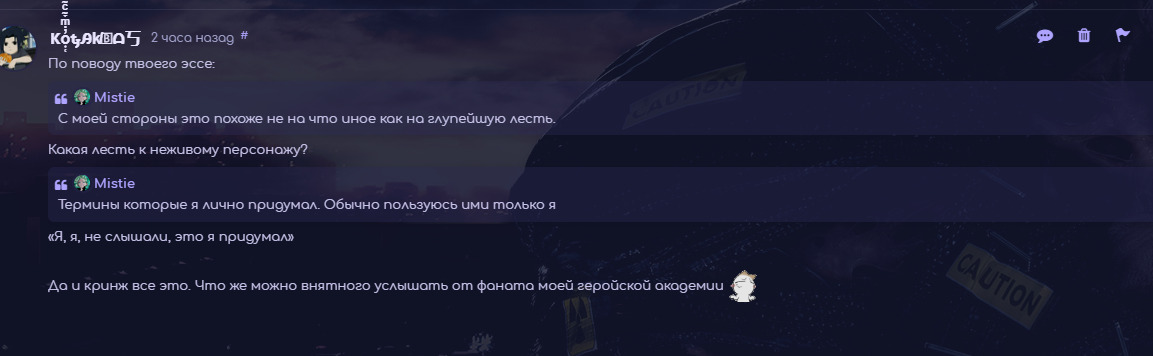 @Experimental IR, не думаю что это святое дело, продолжать с ними сратся, или искать повод с ними сраться, мудрее обходить их стороной, что я порой стараюсь делать, но когда они переходят границы я начинаю срач, хотя я не особо люблю это делать.Ты глянь на этого типа, вот это зовётся дешёвая провокация