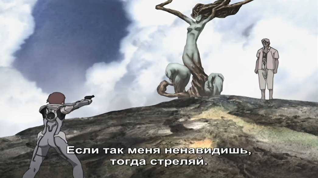 Философия мне не понравилась откровенно. Началось всё, по сути, с того, что мир перенаселен, мы-люди засоряем этот мир, поэтому нам всё вышло боком. Ок, для азиатов это больная тема, я их понимаю. Но что идет дальше? В смысле, как они преподносят развитие идеи — поубивали кучу людей, создали мутантов, и самое важное оказалось — взаимопонимание? Это как? Как мы от перенаселения как главного источника проблем перешли ко взаимному пониманию? Как одно из другого вытекло? Это две параллельные проблемы. Вообще, повествование здесь, конечно, сумбурное, обрывистое, а персонажи, как всегда, страдают скудоумием. «Ненавидишь меня за то, что твоя семья убита? Ну так стреляй в меня, если это искоренит ненависть в твоем сердце». Ну насколько же тупыми надо было быть, чтобы не ответить: «А вот нефиг было эту ненависть порождать!». Блин, наломать дровов, чтобы посмотреть, как другие это будут разгребать — паразитская сущность.