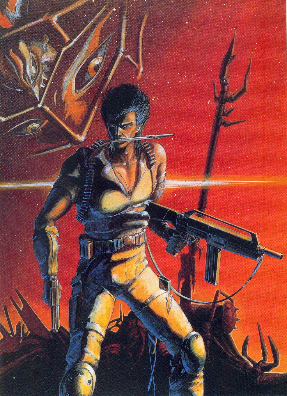 Хороший трешачёк с обилием гурятины, но далеко не самый лучший из тех, что доводилось смотреть среди ОВАх 80-ых-начала 90-ых. Анти-герой на гг аля универсальный солдат Дольфа Лундгрена, прикольная музычка (впрочем, как и всегда в те годы), боевые сцены с лопающимися головами, глазами и прочим гуро в сеттинге пост-апока в духе Безумного Макса, Hokuto no KenКулак Северной звезды, Riki-Oh: Toukatsu JigokuРики-О: За стеной ада, Violence Jack: Hell's Wind-henЖестокий Джек: Адский ветер или GunnmБоевой ангел Алита - пустыни, оставленные остовы небоскрёбов, караваны из каких-то бензиновозов... Танатос победил над Эросом, гг настолько крут, что отказал хорни-тян в кормлении, но минус общий бал, что не грохнул её в самом конце. А ещё забавный плот-твист в конце, если вы почему-то думали, что гг не анти-герой. Рисовка 8 Музыка 7 Боевые сцены/жестокость 8 Сюжет 5 Итого 7
