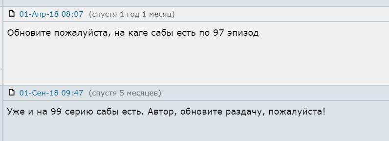 @Кунилингвист, смотрю Переводилдо остальные серии, с моего канала к себе добавил, ну значит не зря я сабы клеял к этой анимке и в вк добавлял(будет теперь всё с сабами и в одном месте). Странно что он боится , что эту анимку "вырежут", но если такое и произойдёт, то он спокойно может скачать все 99 сер с сабами с моего др. канала video.sibnet.ru P.s.а за инфу спасибо конечно, и как только Рыбака Сэнпея я досмотрю, то. . .