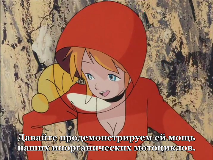 Аниме дрянное. Настолько дрянное, что на него даже сделали советский дубляж. Прям вижу как это было: собрались в Минкульте ретрограды и партаппаратчики, стали репы чесать - космополитизм у нас в стране процветает, перестройка набирает обороты, идолопоклонничество перед западом перешло всякие границы... ну что делать, политика партии тому способствует. А давайте, коли мы с этим ничего поделать не можем, над этим делом жестко постебёмся. Выбрали значит самый никчемный мультик в ненавистной америке, ничего что он японским оказался, английский язык даже приглушать не стали, оставили такие же децибелы как и русскому, назвали все это дубляжом и выпустили на VHS для немногочисленных счастливых обладателей видеомагнитофонов, поместив в начале строгое предупреждение, чтоб не смели переписывать и в видео-салонах показывать, рассчитывая на обратный эффект - если запрещают, то значит годнота, надо тиражировать и внедрять в массы любым способом. Тонкий троллинг был настолько тонок, что этого никто не понял. Кроме меня спустя 28 лет.