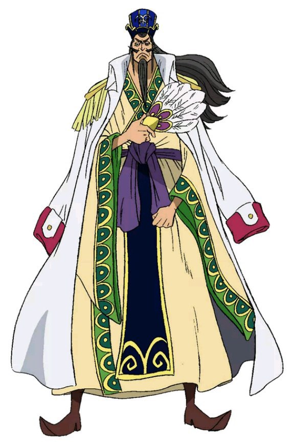 этого мужика будет озвучивать Ичикава Энноске 4й (тот который играет много ролей в кабуки-представлении по ванпису). так же его диз сделан по мотивам Чжугэ Ляна, одного из лучших стратегов эпохи Троецарствия.