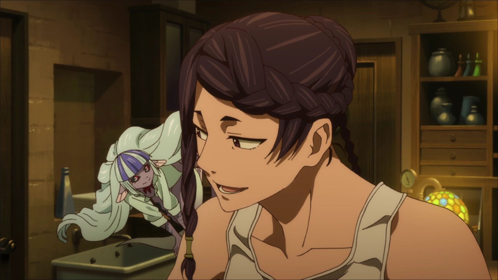 Какая-то загадочная библиотека, которую держит маг, а его сила сильнее чародеев, показанных в сериале - волшебное здание, читательский билет порвал и она появилась дома... да в основном сериале такой магии даже не было. Да и как он видит фейри, если их вроде ток чародеи и слейбегги видят. Зачем он ее выгнал? Овашка ни о чем. Парню живот проткнуло бревном и вдруг он ожил, бревно и дыра исчезли и он пошёл в библиотеку. Ну это прям Картофил со своей регенерацией. Этот сериал ну прям история загадок. Откуда было Анжелике знать про эту историю и книгу? Где она ее высрала? Наверное, из-за сложностей перевода я не понял смысла этой библиотеки (смотрел в озвучке Anilibria), так что если кто может, подскажите, пожалуйста, правила той библиотеки и почему тот парень там застрял.