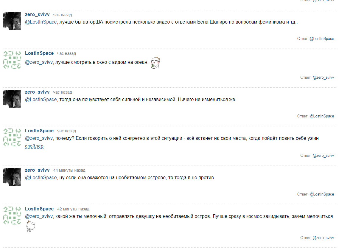 @Полезный Мусор, Венганза хотел видеть на Камни, а я хочу на Катанагатари или Прикосновение небес, посмотрим в общем@Полезный Мусор@Tri Olom, Запили топик обсуждения этого топика)А что там думать-то изначально было. Там просто из каждой щели сочилось заострение именно социальной темы, нежели на художественной ценности сабжа. В итоге так называемая рецензия больше походила на жирный вброс. А если нет, ну.. что поделать, если в любой непонятной ситуации людям проще обвинить во всём "пропаганду" или что-угодно другое, нежели найти проблему в себе самом.