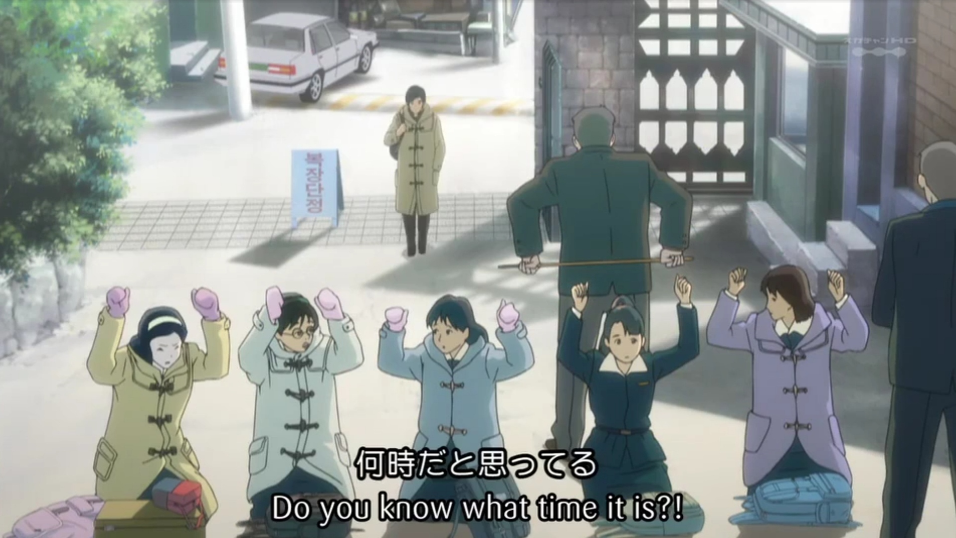 Приятна анимация, тёплые задники и даже ветер красиво развевает волосы... для клуба самое то. Но блин, лицевая анимация! Не всегда соблюдают перспективу лица, это как если человек разговаривает и всё время смотрит куда-то сбоку от лица. Или поверх головы. Так же отсутствие нормальной озвучки и вообще японского рипа без хардсаба (его кажется не было) отправляет сериал в долгий ящик.