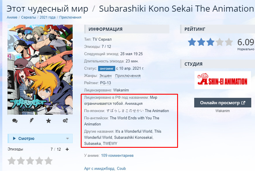Прошу прощения, а кто название коносубы сюда поставил вместо нормального? Вы же тут за лицензии и офф перевод. Почему тогда не "Мир ограничивается тобой. Анимация"? Это и к названию игры подходит и является официальным переводом названия.
