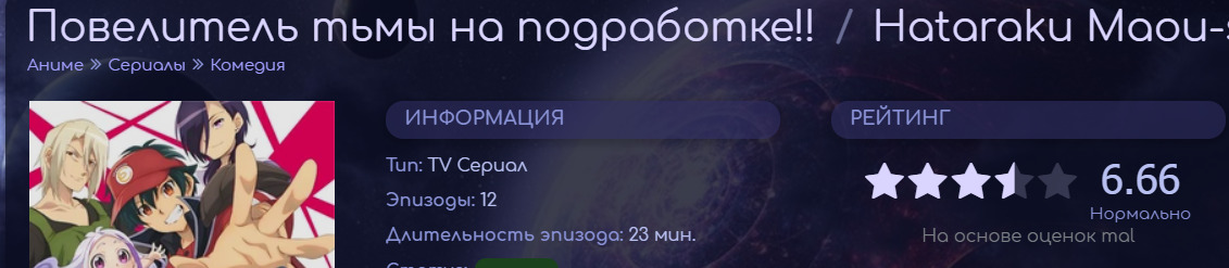 @siverko19@elvaleto, тут оценки с МАЛа, если у тебя нет приблуды шикиморевской@BK228@siverko19, Что такое МАЛ?@siverko19@BK228, сайт. Ссылка на него есть на страницах тайтлов спрва