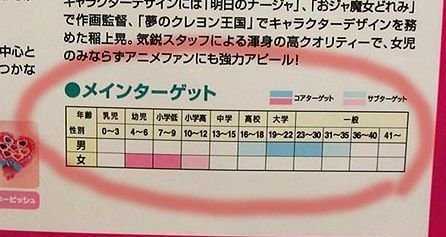 @няхин, это скорее аниме для всей семьи. Можно в любом возрасте смотреть. По факту его и смотрят люди разных возрастов, это одно из самых популярных аниме на японском тв. Вот, кстати, ЦА по мнению Тоей для самого первого сериала.
