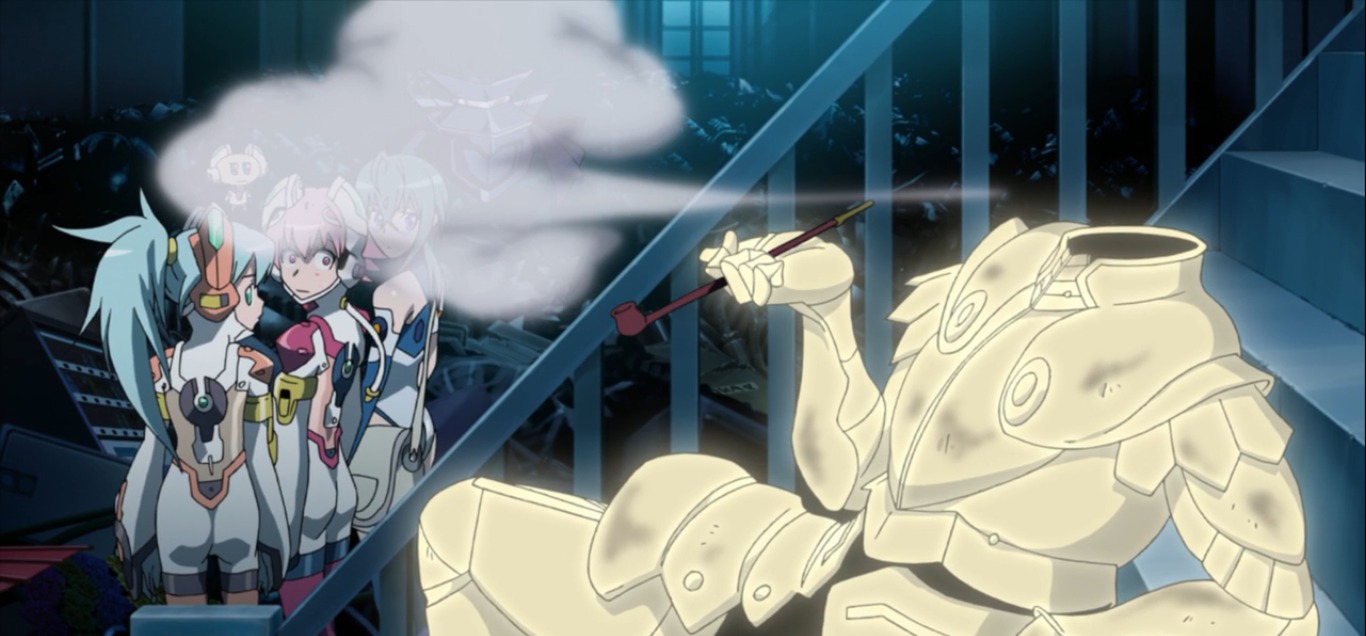 Первая половмъина прям на ура заходила. Просто набор внезапной бодрой кринжатины + новые персонажи с исключительно хитрыми ебальниками + боевые лоли + загадки по сюжету в духе 90-ых, что ещё надо? Со второй половины пошло постепенное затягивание и попытки хоть как-то это всё увязать и закончить, с большой потерей в плане юмора. По началу казалось гениальной пародией на космооперы. Заключительные 4 серии с гачи-мучи ну норм, есть твисты, смена преаритетов, какой-то саспенс от происходящего. Дыр дохерищи, половина механик так и не понятна (гипноз, например), сюжет словно доделывали в процечсе выпуска. Немного ЕВА-клонство под финал в плане переживаний персонажей.