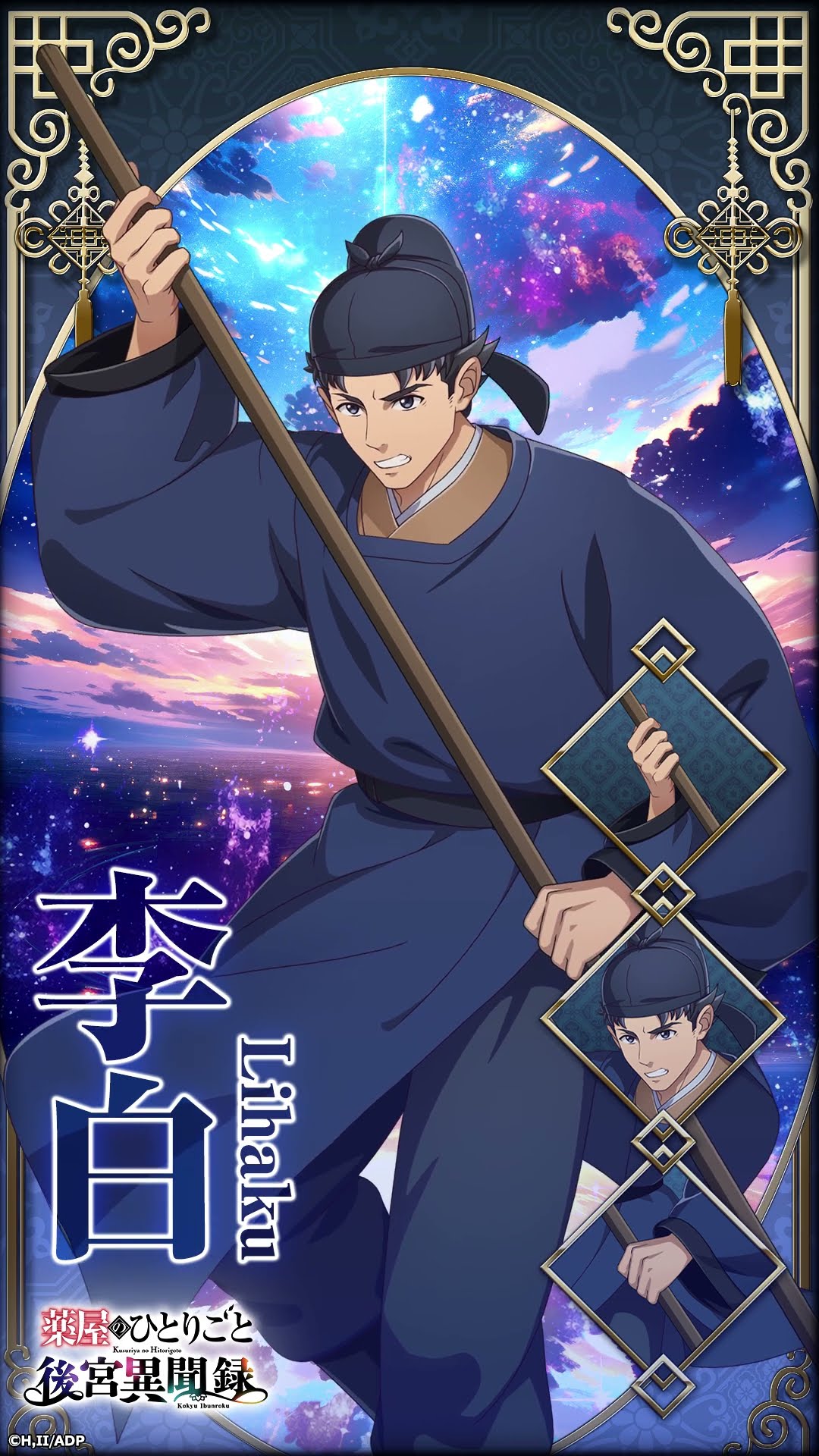 Со второго тома по четвёртый (вторая половина первого сезона-конец второго) — арка его принятия своего настоящего положения, от которого он почти семь лет бежал. История преимущественно рассказывается от лица MaomaoМаомао, но со второго тома глав от его лица становится ощутимо больше, и быстро становится ясно, что центром истории является именно он, потому что все глобальные события ведут к императорской семье. На самом деле, Маомао и в первом сезоне зачастую плыла по течению, крайне редко проявляя инициативу. Как правило, она получала очередное задание от господина «иди туда, сделай это» и выполняла его поручения. Основными моментами, которые она инициировала, было само желание помочь наложницам и встреча с Лаканом. В остальном она лишь разбиралась с тем, во что её ввязывали другие.