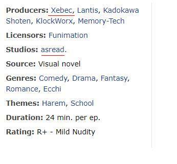@Lena(2x2), Просмотра однозначно стоит. Что насчет этти, то тут на данном жанре внимание сильно не акцентируется, хоть фансервис естественно присутствует. Все-таки гаремник из 2006-х.@Lena(2x2)@Schiz©, в отложенные@ВСЕХ БЛАГ@Skachek, Может по этому?, информация с MAL@Lena(2x2), Тоже себе запланировал. Еще сейчас внку чекну@Lena(2x2)@ВСЕХ БЛАГ, я уже передумал, плюс где то спойлер увидел.@ВСЕХ БЛАГ@Lena(2x2), Ты про концовку? Ну это вроде канон, такой же хлебушек на ГГ и в School DaysНе зря дропнул к финалу.