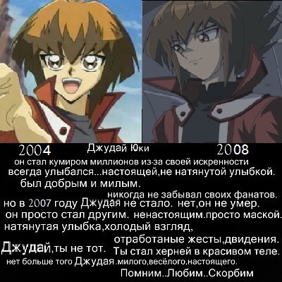 @Alex Ralison Юсей лучше@Alex Ralison@Yugioh, ну он ведёт себя как бревно, в большинстве случаев его эмоции вообще уходят из под сюжета, иногда даже банально игнорит, когда ему вопросы задают. Э, нет, Джудай лучше@Alex Ralison ну еще Цукумо Юма он тоже лучшийЗ.Ы. Если бы он остался с Ra Yellow в четвертой серии, то сериал бы закончился после пятнадцати серий.