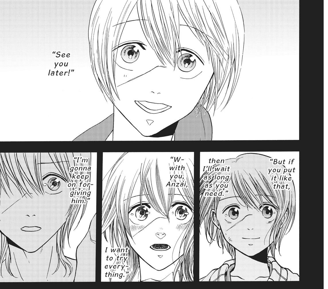 Вот страница из последней главы в манге, где Анзай оглядывается назад на путь, который они вместе прошли и по-моему даже по этим нескольким фреймам можно уследить эволюцию персонажа.