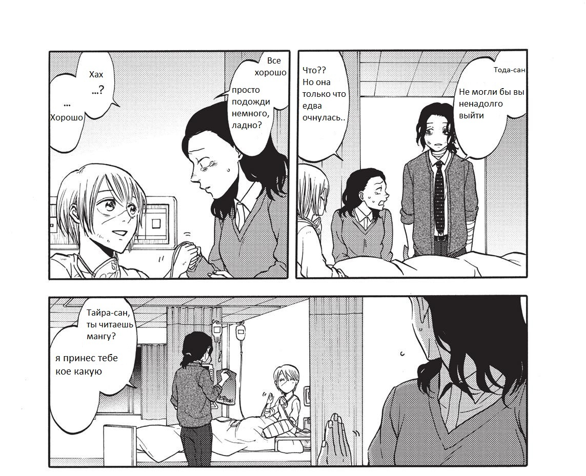 Единственное, пожалуй, за что я ее осуждаю - это полное пренебрежение к ее подруге из университета. Она постоянно беспокоилась о Цукасе, никогда не забывала про нее, звонила после инцидента с журналисткой в Икебукуро и навещала в больнице, и поддерживала в то время, когда Цукаса и Анзай расстались. А Цукаса за весь сюжет так ни разу сама не проявила инициативу в общении (я честно до последней главы ждала и надеялась), ни разу сама ей не позвонила. Особенно мне было жалко подругу в 40-41 главах в тот момент, когда