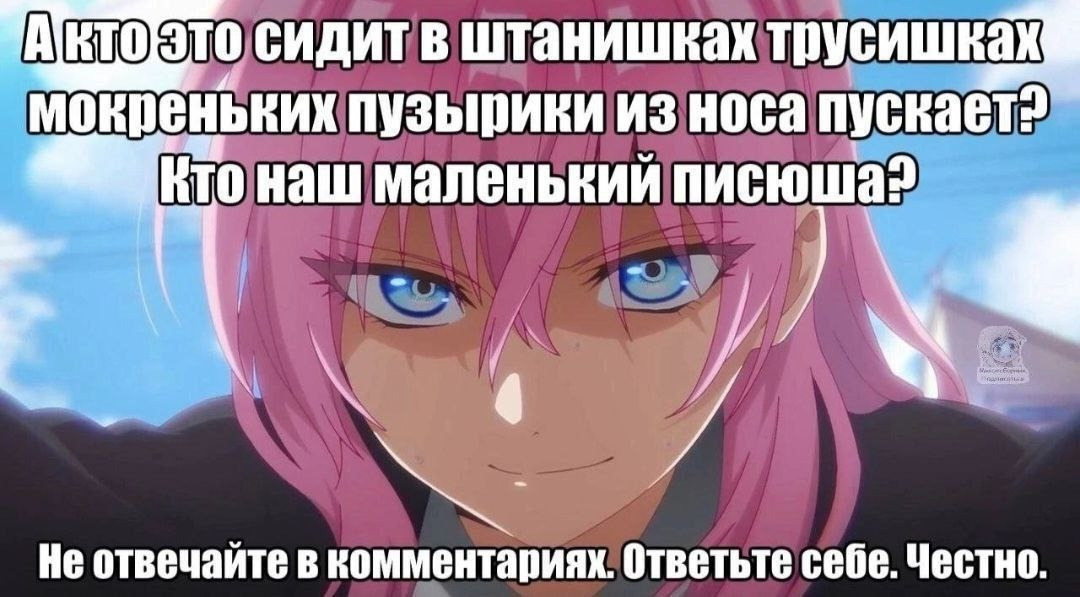 Я ответственен за себя,говорю за себя,и кидаю свои арты это раз. Второе - хотите драться с дрочерами ок берете флаг,выходите на площадь, начинаете делать свои пикеты. Ты живёшь в 21 веке,и есть норм люди По твоему я сижу и обмазываюсь этими артами Ильякса? Тебе не кажется что твоя борьба какая то странная ? Ну тогда ты должен бороться с сайтами рул34 а не идти против обычных граждан. Тем более и так везде цензура и все урезают и голых мужиков мы видим чаще голых тянок Я не понимаю твоих претензии. Плюс не забываем что в каждом аниме или комиксе есть : любовные сцены,горячие источники,бани,перестрелки, голые смешные моменты итд И так было всегда,где то уместно где то не очень. Претензии к артам которые неофицальные ну хз. Это тебе тогда надо бороться с авторами или теми кто сделал это программное обеспечение иди Тото кто создал эти нейронки.