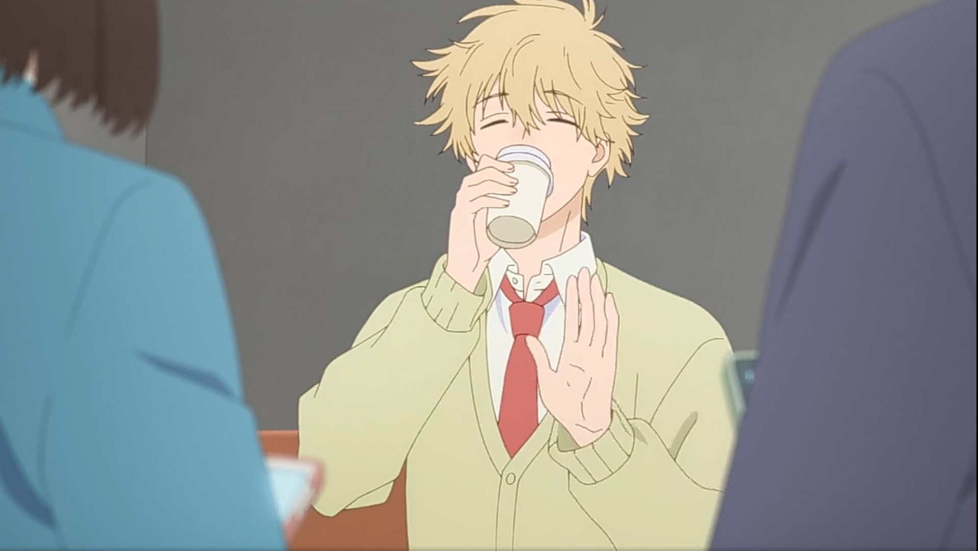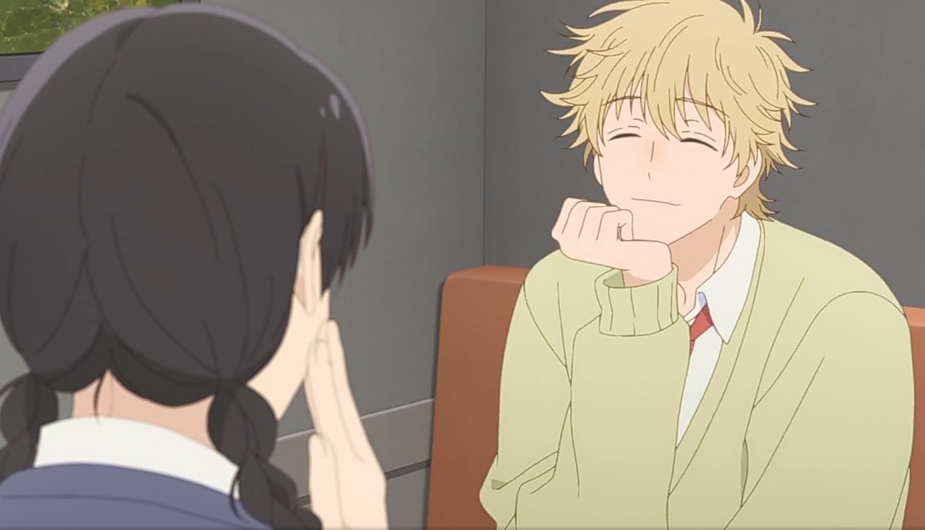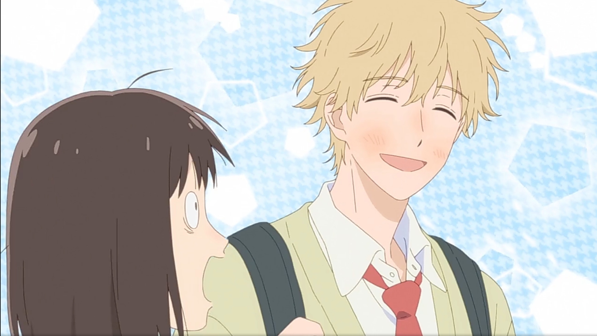 У них с Микой Эгасирой прямо одинаковое поведение по отношению к объекту интереса. Забавно, что Мике он сказал, чтобы "она не слишком надрывалась", когда сам надрывается для общения с Мицуми)