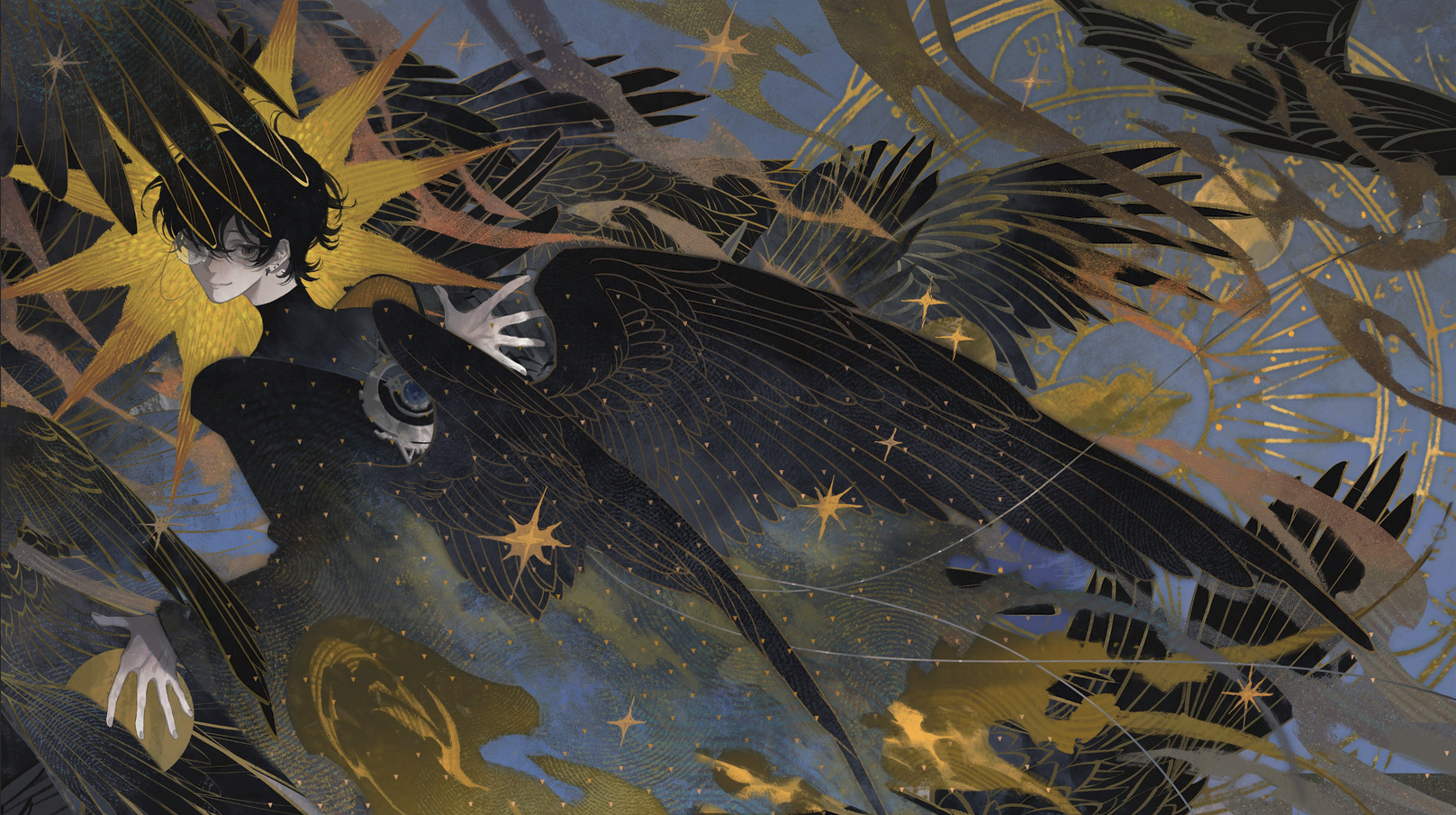 The face of the clock grows blackened wings