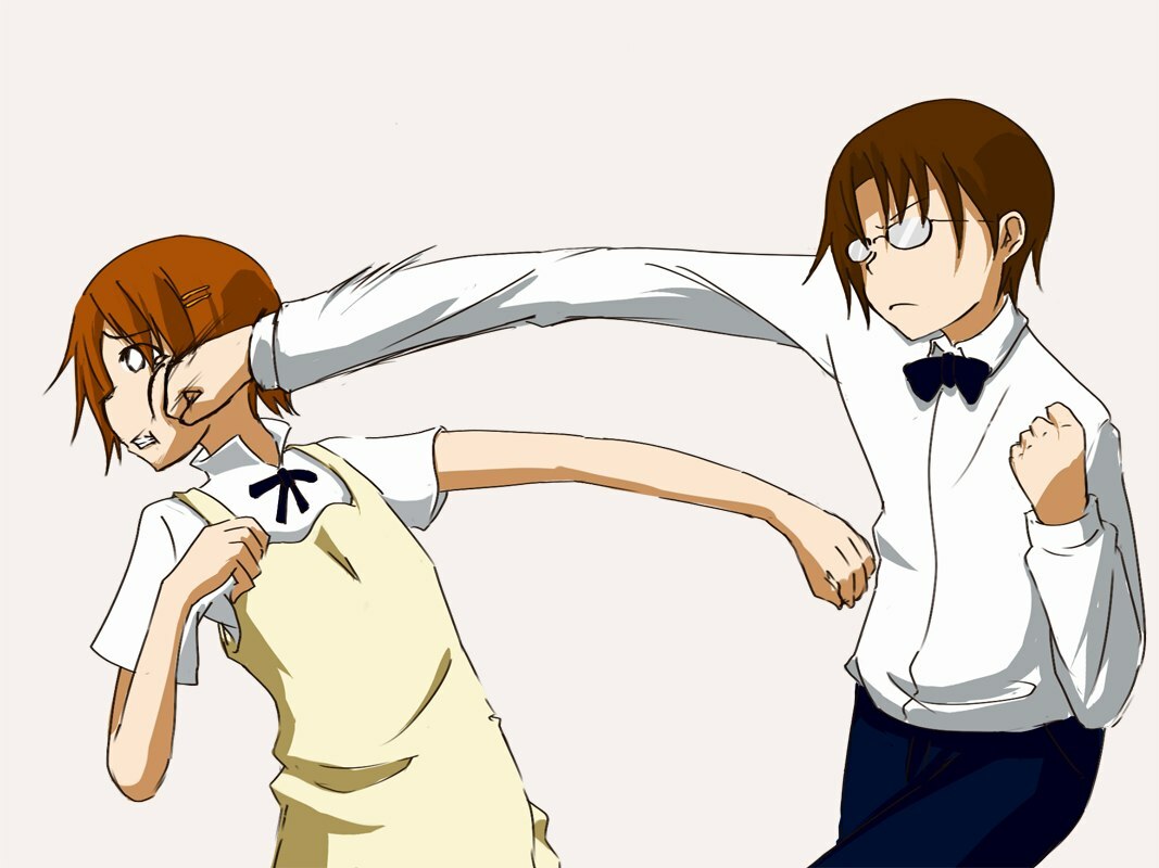 И терпила-кун тоже хорош, отличился. Кем вообще надо быть, чтобы завязать отношения с человеком, который тебя избивает... Чем надо быть мотивированным? Насколько поломанным, чтобы считать это ну типа какбы сносно, норм, можно встречаться... Да хоть миллион раз она там со временем изменится, тут тебе прилетело даже не парочкой апперкотов, как от типовой цундере, а прям систематическое избиение ни за что. О да, уверен, с ней можно построить что-нибудь здоровое вместе