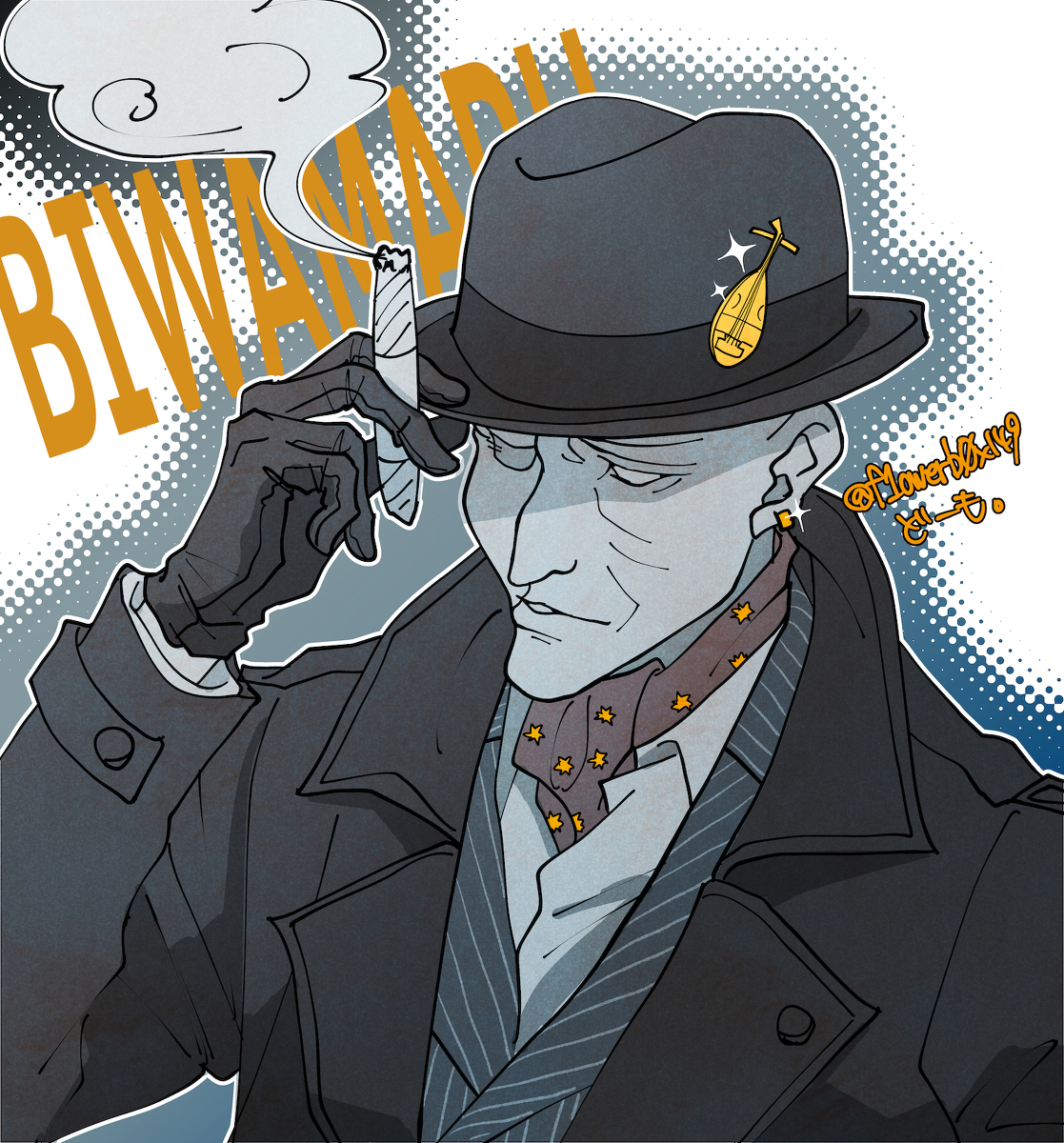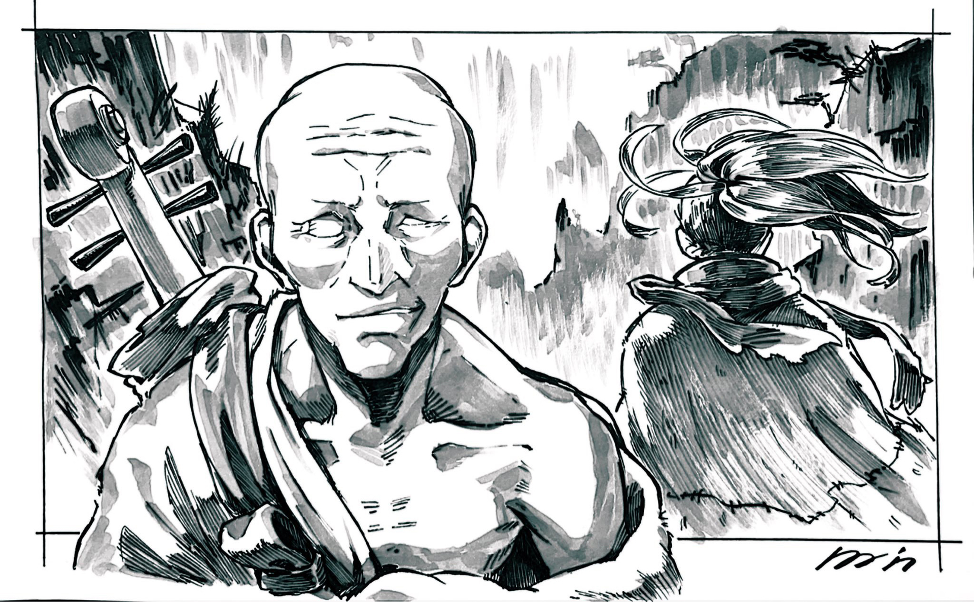 В аниме 2019 года: Странствующий слепой монах, охотник на демонов. Как и Хяккимару видит "Цвет души" - души всех живых существ. Его оружие - это кликов, спрятанные в Биве.