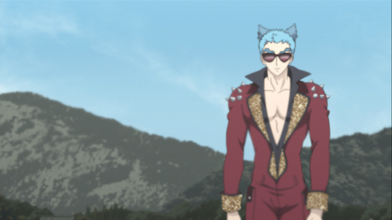 Чем думали авторы, когда давали ему такую внешность? Вроде смотришь серьёзный тайтл, а тут на экране постоянно мелькает клоун-сутенёр К характеру персонажа претензий нет.