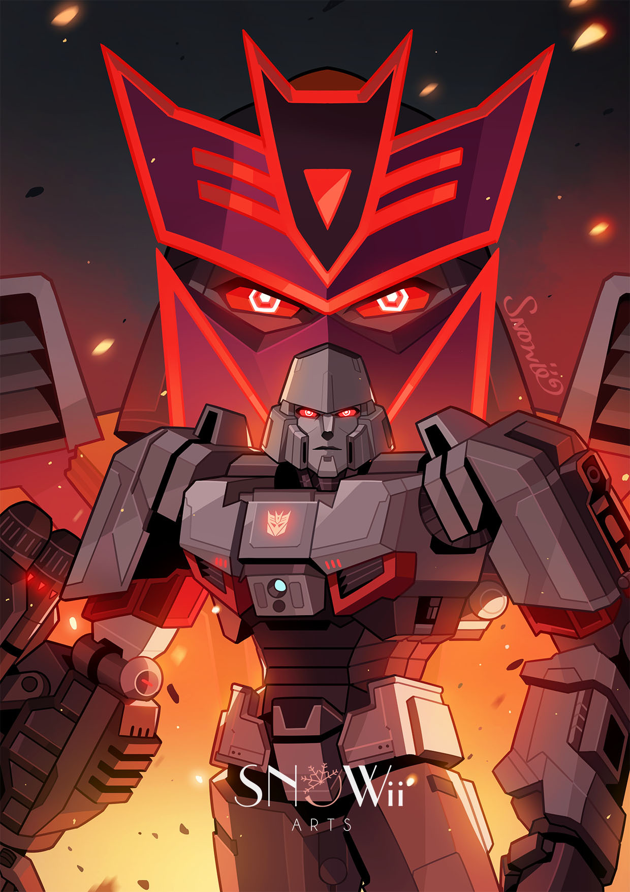 Ты только посмотри на эту стальную мощь, на этот властный взгляд и на то, как он просто заходит в помещение, и все сразу понимают — батя в здании. В нём столько харизмы и мужского (ну, кибертронского) вайба. Он такой суровый, такой бескомпромиссный, просто ходячий (и стреляющий) SEKS в металле. Когда он в очередной раз ставит кого-то на место своей пушкой или просто стальным голосом отдает приказ — всё, я официально в лужицу. Вот это я понимаю, настоящий Лидер с большой буквы, за которым хочется не просто идти на край вселенной, а бежать вприпрыжку, выкрикивая «All Hail Megatron!».
