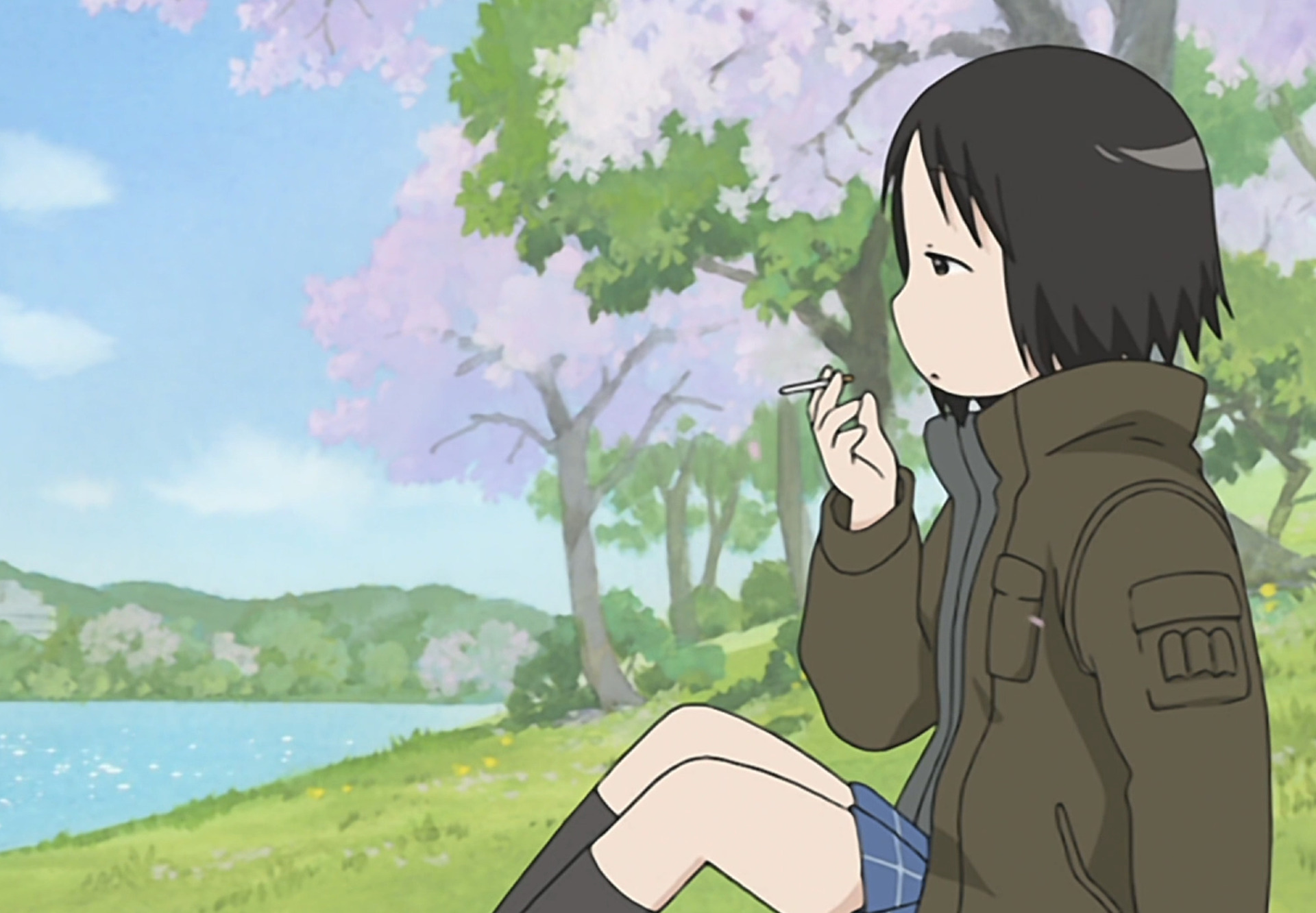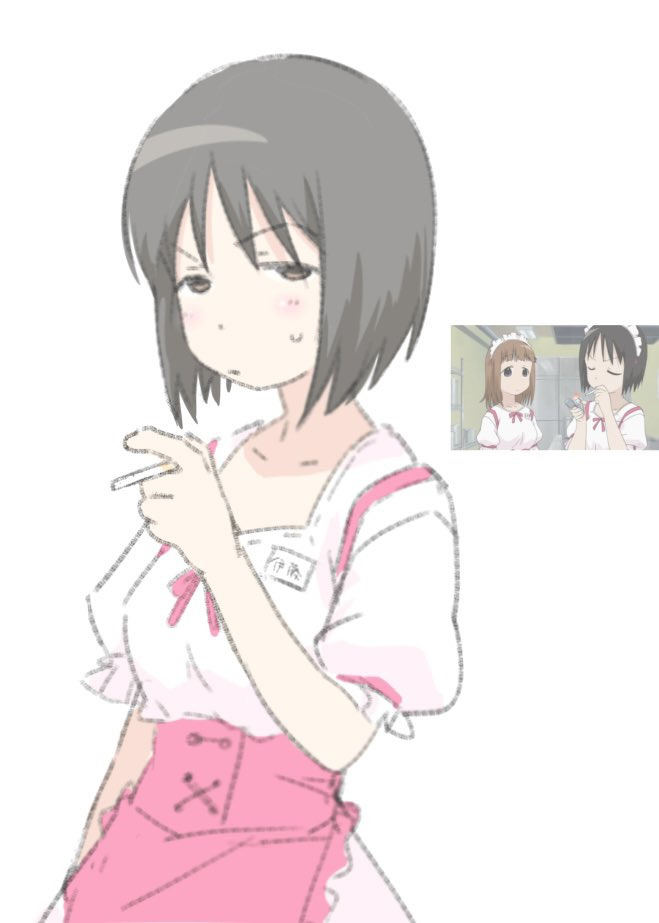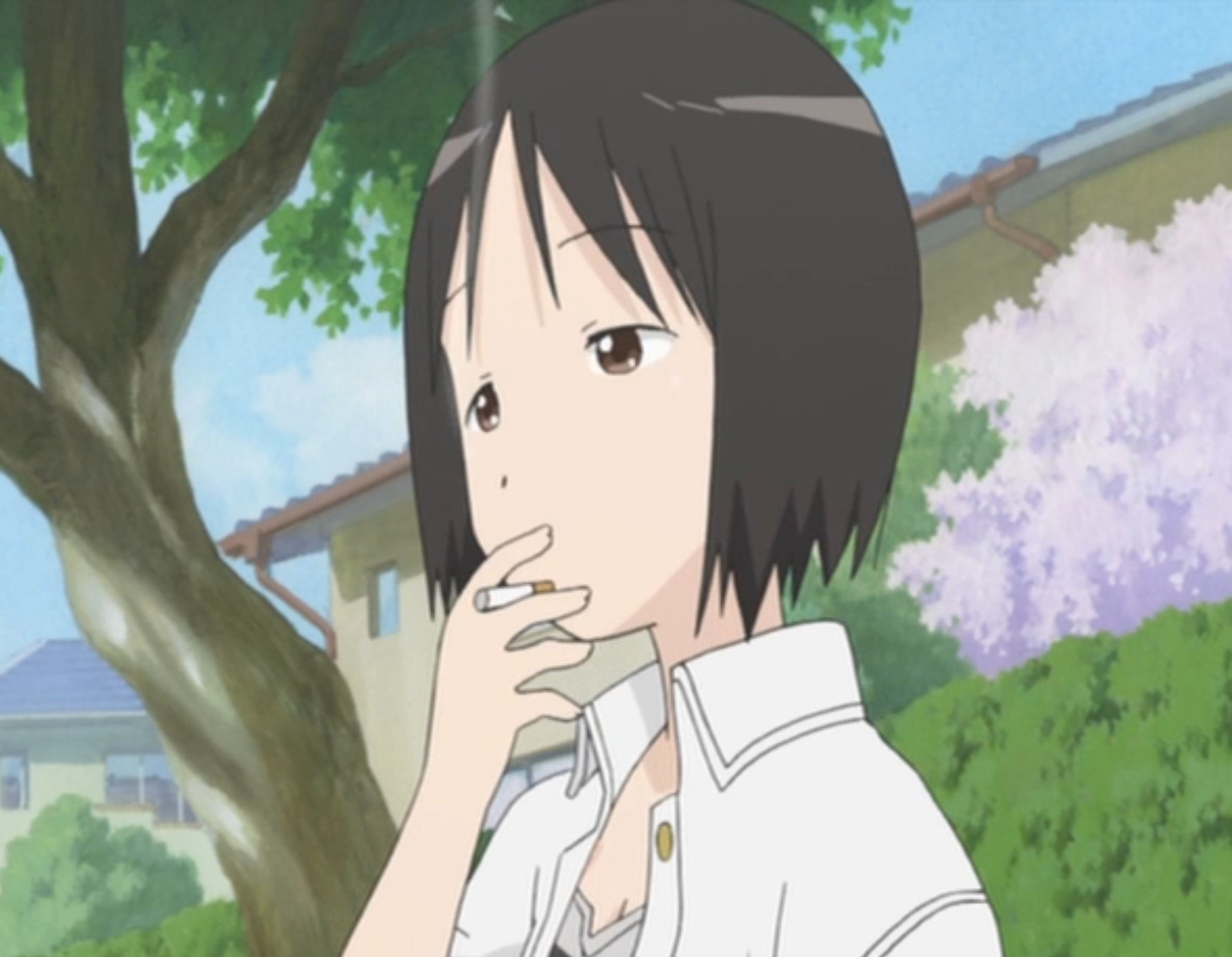 Ей 16 лет (в аниме — 20), много курит