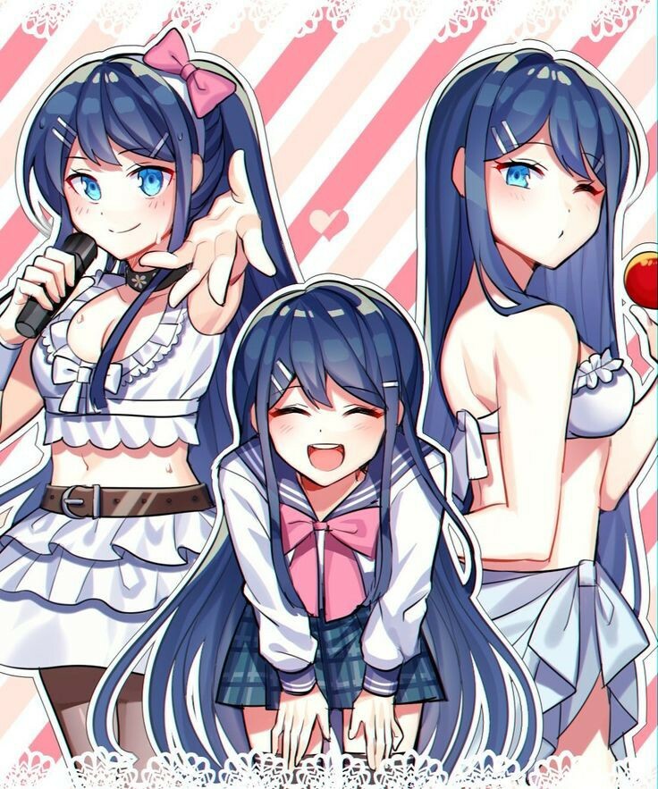 А еще её часто на артах изображают как яндере, но..
