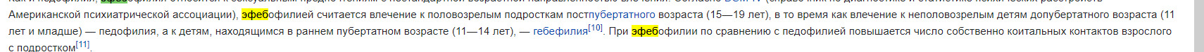 @Смазливый Гопник, Эфебофилия болезнью даже не считается , впрочем с аргументов "если есть статья, то это неправильно"...@Смазливый Гопник@flyoffly, ребёнок в 15 лет не способен принимать серьезные решения, поэтому и есть запрет. А воспитание под себя, чтоб на и без того опущенную самооценку не давило в целом признак ущернбного человека. Энивей педофилию нужно лечить в дурке. Это не нормально настолько ссаться сравнения или какого-либо проявляения характера от партртёра, чтоб засматриваться на незрелых несформированных детей.@flyoffly@Смазливый Гопник, Так эфебофилия не является педофилией@Смазливый Гопник@flyoffly, да-да, да, еще чё скажешь? Может статьи мне скинешь про то, что 15 лет это уже сформированная личность для отношений, и вы всё врете? Вообще предлагаю питицию на чендж орг создать, чтоб государство выдиляло каждому 23+ летнему омегану по 15-ти летней девственнице, чтоб они себя ущербно не чувствовали, а обидчики детства им завидовали.@Kitsune74,@flyoffly@Смазливый Гопник, небось кучу справок собрать потребуется, как обычно@flyoffly@Kitsune74, А что, в 18 подал заяву, а как раз к 23 и соберешь последний документ@Смазливый Гопник@flyoffly, мы в Америке живём? Или в СНГ? У них там и с 12 лет пол менять можно, и 10000 гендоров. Не нужно равняться другую культуру. Еще скажи, что в Японии возраст согласия с 13 лет и во круть нам бы так. Узенько, а главное на комплексы не давит.@flyoffly@Смазливый Гопник, В Японии кстати с возрастом согласия не все так просто.Впрочем сейчас изменили и возраст согласия подняли вроде до 20(18летний возраст до 20 имеется введу) или женский до 18, тут точно не помню