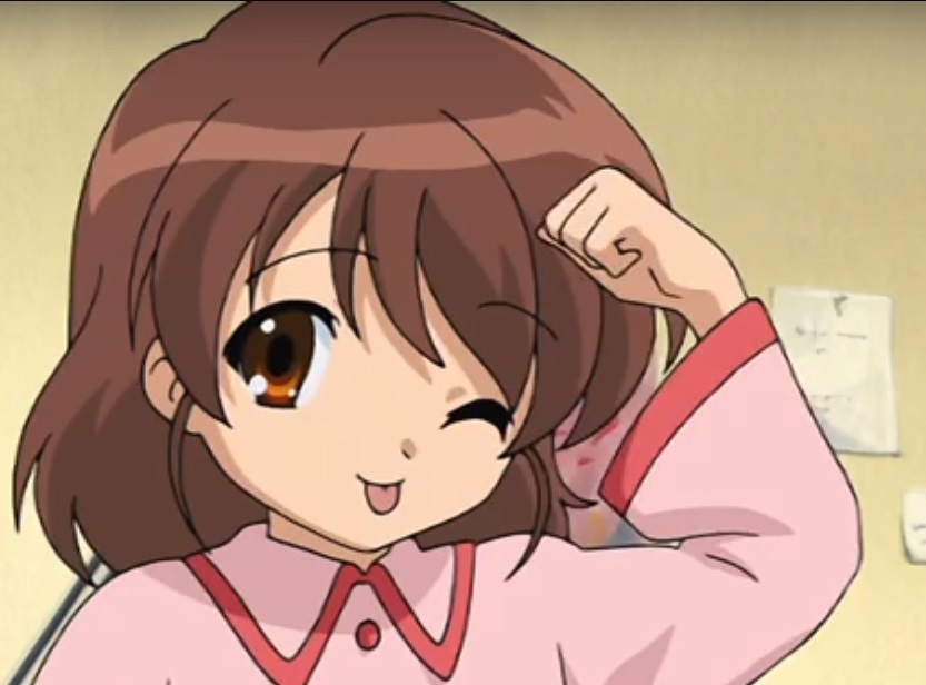 И ещё, когда Микуру ошибается, у неё есть привычка легонько стукать себя кулачком по голове, но тут я посмотрел шестую серию, и в момент, когда Кён напомнил сестрёнке, что та забыла спросить разрешение взять ножницы из его комнаты...