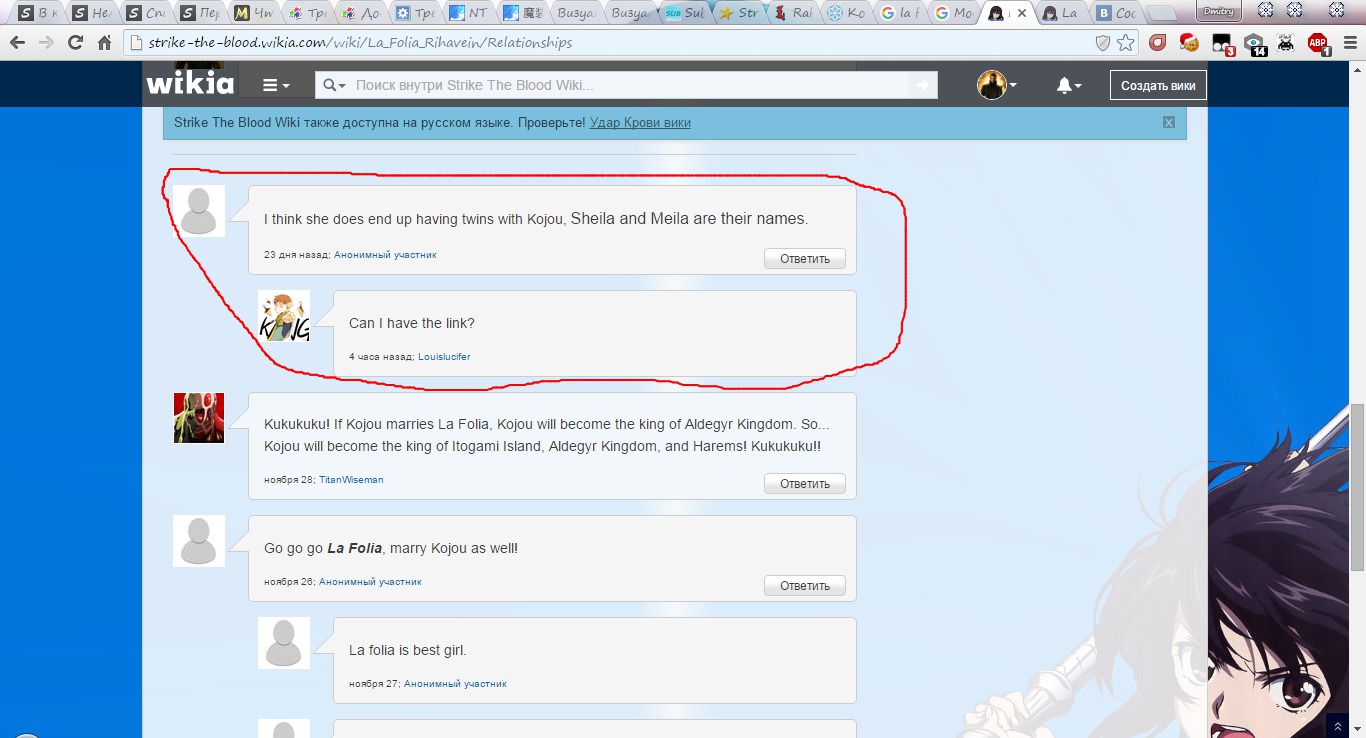 @Lord of Fate,@NordOst16@Demonmercc, все кого но кусал уже считаются его супругами, вроде даже на парней распространяется@Demonmercc@Adamantius, Так это правда или стеб? А вообще буду этому рад красивая тянка.@ВесёлыйШтирлицПётр@MatteKudasai, У нас с тобой одинаковые мысли.@Demonmercc, мне лелеет душу только то, что у него, скорее всего, будет много жён)))@Demonmercc@NordOst16, это да@Гипербореец@striker1337@kariya-dono, эй, а как же Нацуки@kariya-dono@Гость из Гипербореи, так Нацуки и правда шикарная. Но Ла Фолия всё-таки лучший вариант@Treger, и что в ней такого?