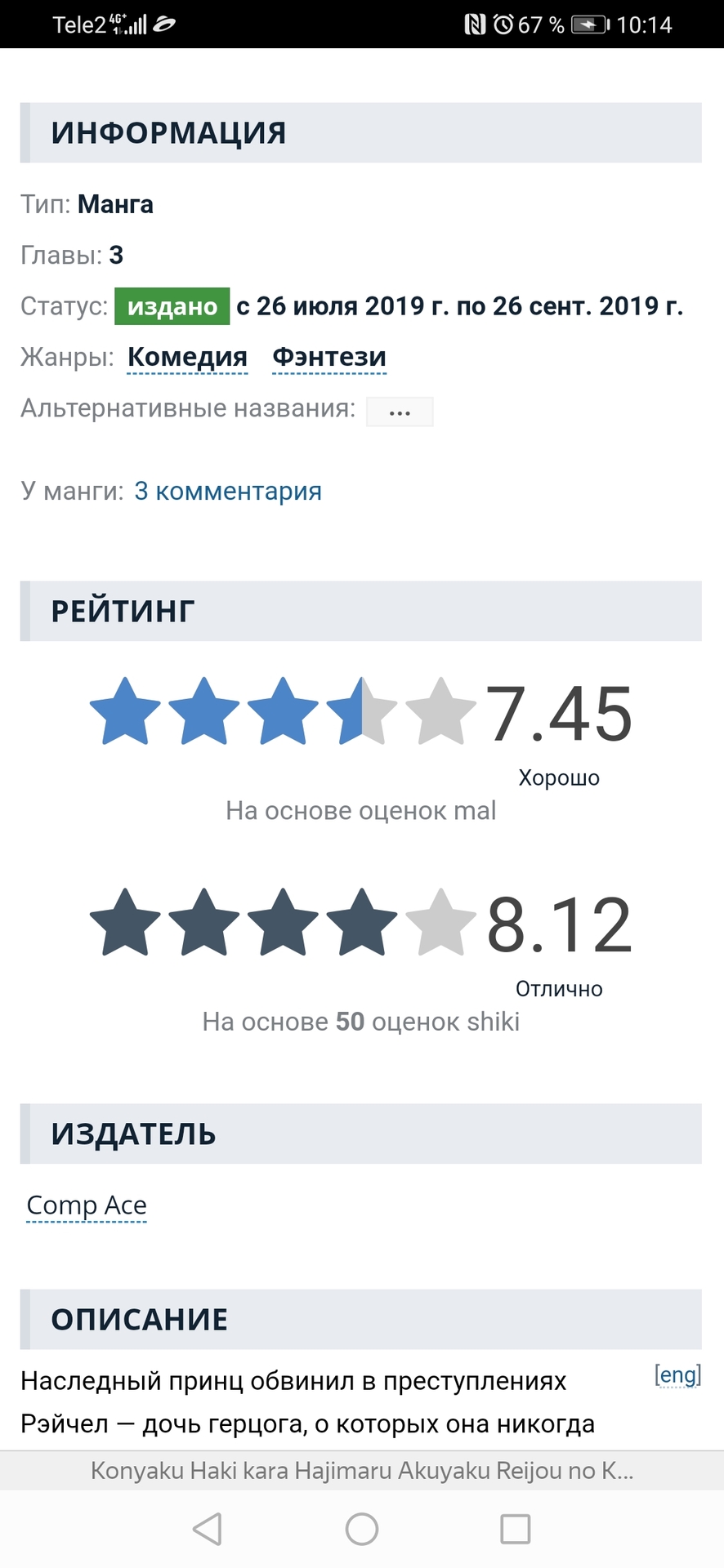 @По уши в манге, смысл разглядывать, если лежит на поверхности. Просто я с включённым мозгом привык читать. Если работа хорошая – больше удовольствия доставит, а если есть проблемы – негатива. К тому же, я бы не стал называть читателей с мангалиба токсиками. Обидчивыми – да, а вот до токсичных им ещё далеко. Скорее пользователи либа, за счёт не столь великого возраста и отсутствия положительного опыта от не шибко популярных работ (т.к. не читают), почти всеядны. Куда не плюнь, всё всем нравится. Ну разве что кроме малоизвестных работ. Но там просто комментариев особо нет. Когда же собирается контингент по типу меня (и при этом работа переведена/переводится или о ней имеются определённые предствления), то и положительные комментарии также появляются.