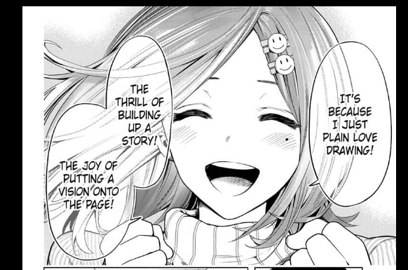 сама идея понравилась. автору было куда развернуться: и тема плагиата, и будущее манга-индустрии, и будущие тренды, и талант вс. труд в творчестве, и стоит ли мечта всего этого, етс етс
