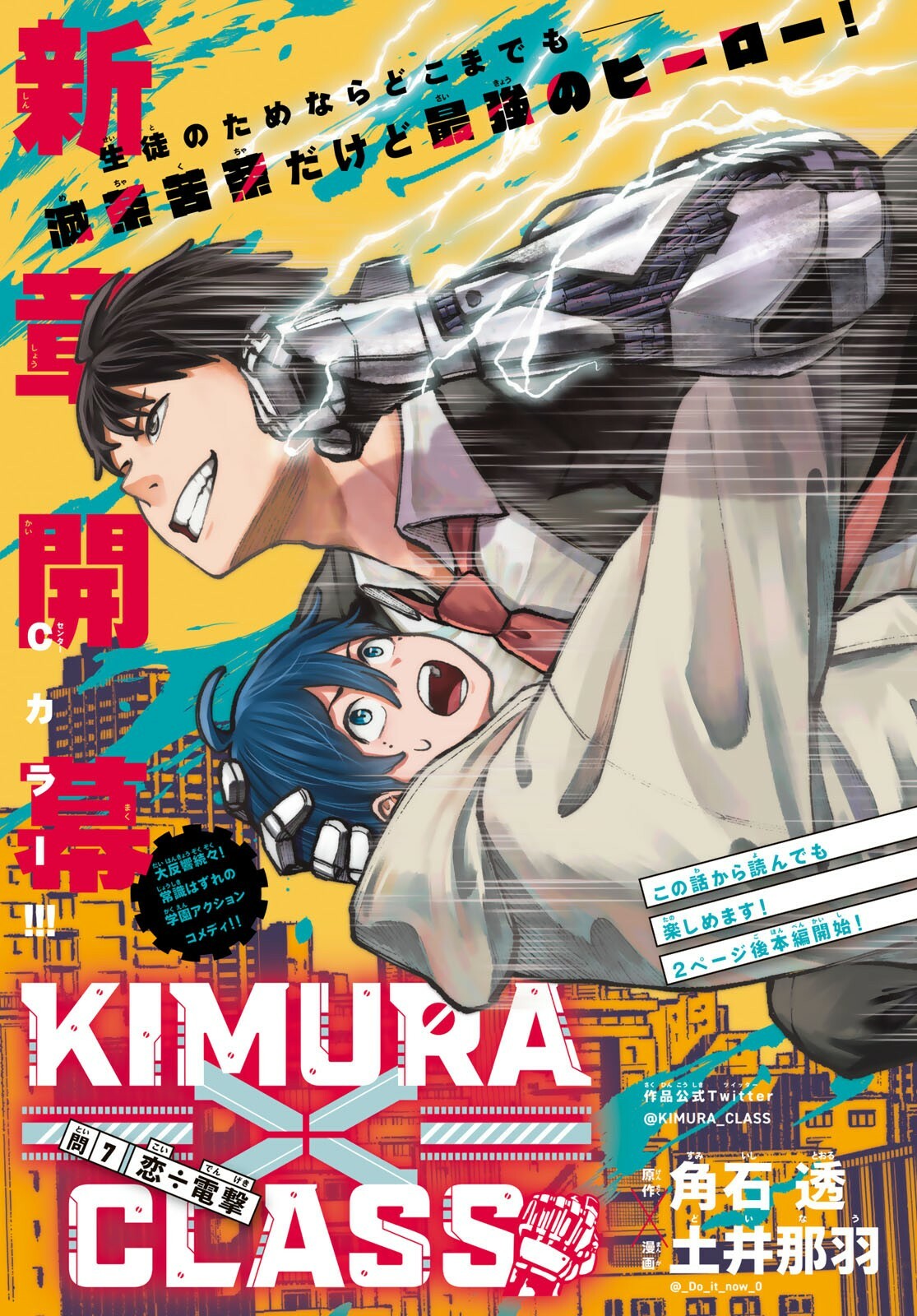 Цветные страницы первой главы «KIMURA×CLASS», новая серия Сумииси Тору и Доинау из 30-го номера Weekly Shonen Magazine.