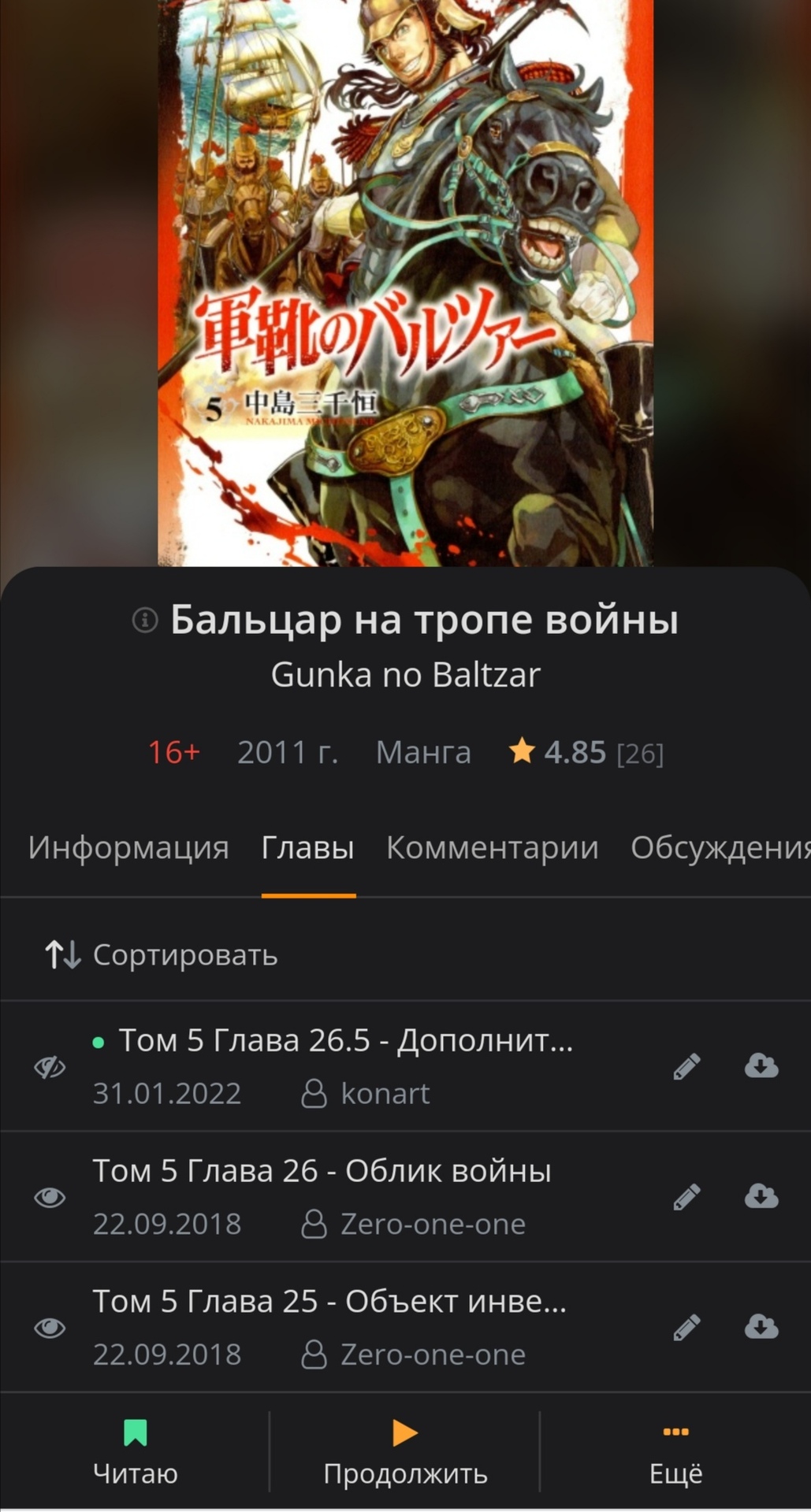 ахахаха, фансёрвисная, если её так можно назвать, side story к 20 (вообще без понятия как это у себя в списке прочитанных глав отразить) глава про майора решившего пойти в бордель и как отвественный офицер вычистевшего его весь от сифилиса ржачна донельзя. P.S. что, до сих пор этой эпичной (хотя бы по качеству исполнения) мангой заинтересовано всего лишь 1,5 анонимуса вместе со мной, а остальные читают только наруту и прочую попсу?