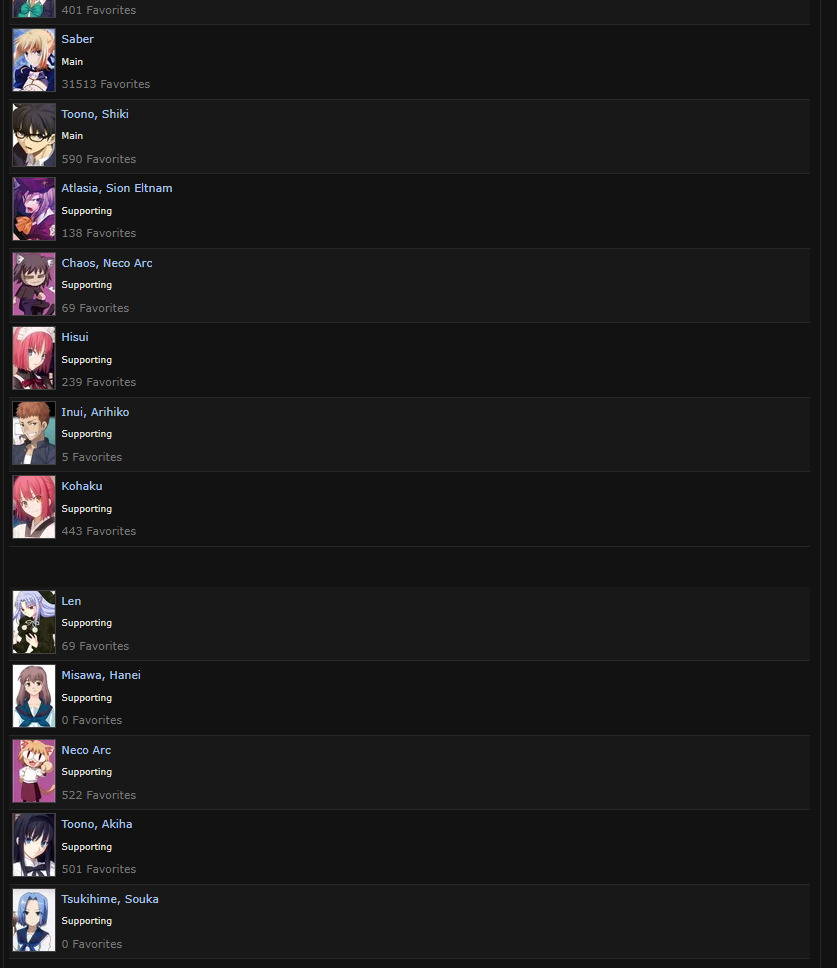 мою правку приняли, ждем теперь их на шики @Enimant, ты вообще видел тут сейбер? я не до конца дочитал, но она уж точно не должна быть среди главных персонажей же