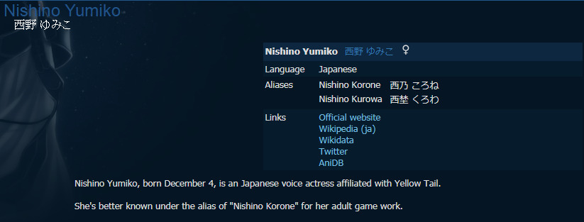 Минацу-тян411 мая 2015Топик обсуждения человека.КомментарииArcherS23 июля 2020#Админам настолько впадлу зайти и посмотреть РЕАЛЬНОЕ ИМЯ сейю...или что?Причём это уже далеко не первый раз...@Алекса УруруАлекса Уруру24 июля 2020#@Archers, если она известна больше по псевдониму, то почему нет@ArcherSArcherS25 июля 2020#@Алекса Уруру, ценители негодуют ArcherS12 августа 2020#Ох уж этот MAL назадТвой комментарийссылкаанимемангаранобэперсонажчеловекOKВставка изображения:OKЦитирование пользователя:OK* Текст