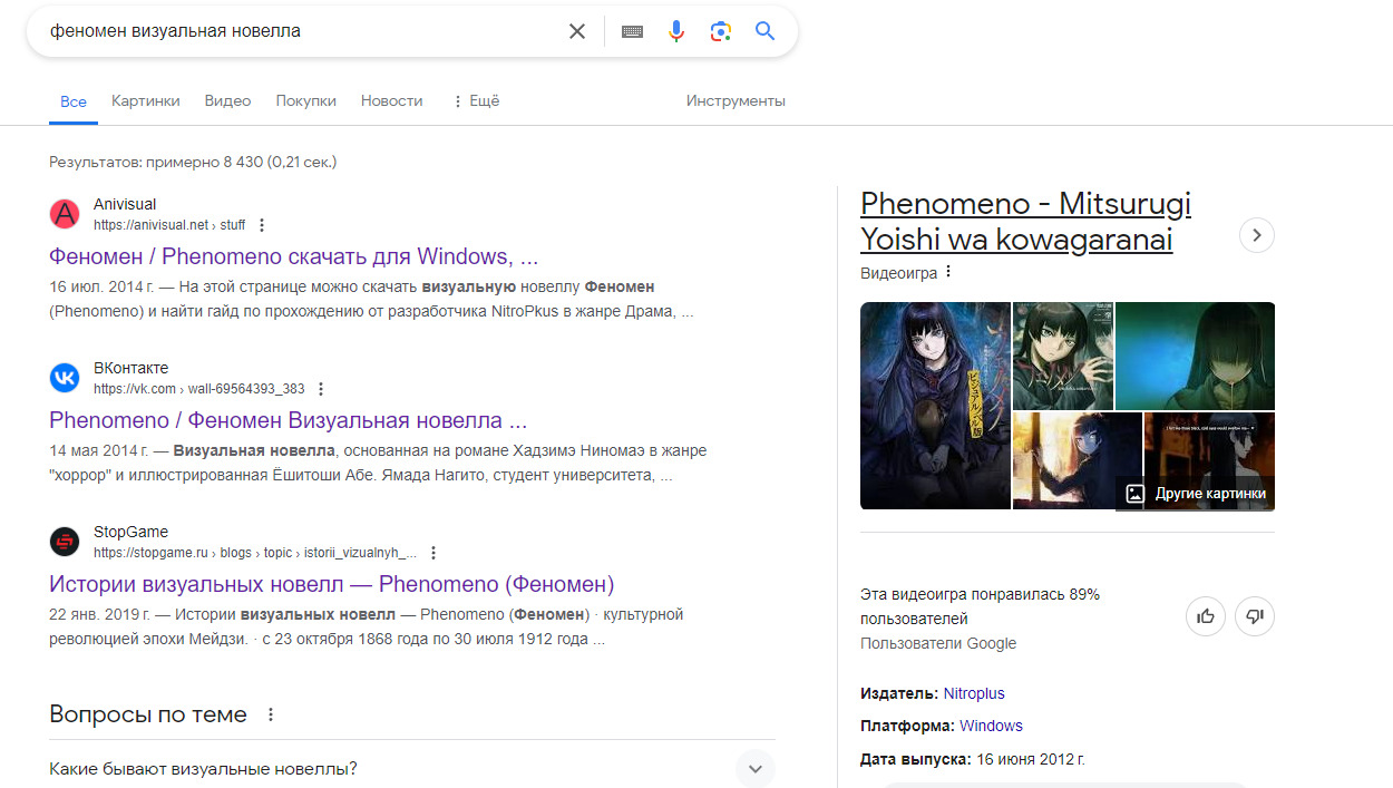@Jeos, спустя полгода отвечу. Визуальная новелла была создана для продвижения ранобэ и адаптировала пролог и первую главу первого тома. Я не знаю, откуда человек выше выдумал инфу про то, что ранобэ сделано по вн. Жаль конечно, что это всего лишь реклама оригинала, так как вн была действительно атмосферной, хоть и очень короткой.