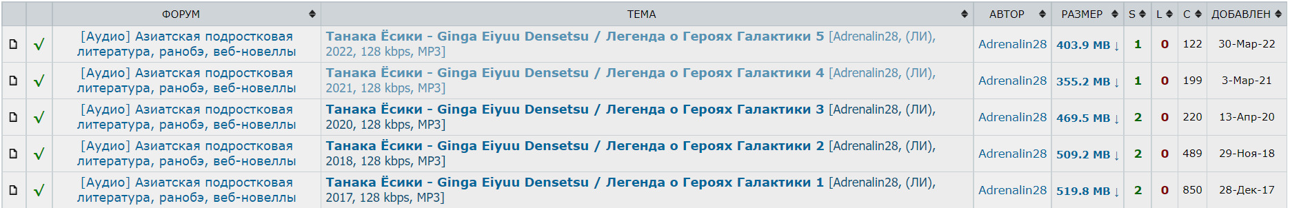 @Marik_Fun,@Aegon Targārien@Aлeкcaндрoвич, кроме того, есть еще аудиокнига от Adrenalin28, по тем же первым 5-ти томам. Можно скачать на Рутрекере, либо слушать онлайн на сайтах с аудиокнигамиТенденция последних лет - перевод нового тома раз в год, а через небольшой промежуток времени - аудиоверсия. В фан-группе в вк по ЛОГГУ (/spacelegend), кроме новых глав ранобехи, есть еще частично 4 тома Гайдена (сам не читал, хз что там).