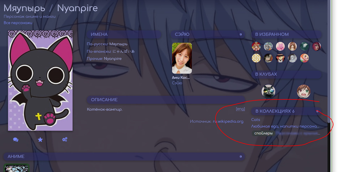 Уже есть целых три коллекции: эта, эта и эта. Но они уже давно заброшены, кроме этой коллекции лолек.Правила:В данной коллекции собираются персонажи, которые являются или являлись вампирами или были в образе вампира.Разделение по группам:1. Родились вампиром - персонажи, которые родились как вампиры.2. Обращенные - персонажи, которые были превращены в вампиров другим вампиром.3. Эволюция/Трансформация - персонажи, которые не были вампирами изначально, но стали ими после того, как прокачались или претерпели трансформацию или съели что-то не то.4. Другие кровососы - существа, пьющие кровь, но которых сложно отнести к вампирам.5. Вампиры (Нужно уточнение) - известно, что персонажи являются вампирами, но не достаточно информации, чтобы определить их в конкретную группу.6. Названы по ошибке - персонажи, которых, ошибочно, считают вампирами.7. Были в образе вампира - персонажи, которые наряжались вампирами.8. Котики-вампиры - персонажи, которые являются вампирами и имеют какие-то особенности, связанные с котиками.9. Другое - околовампирская тема, но пока сложно определить в группу.Официальные арты:спойлерЛанга ХасэгаваТобикити УсахараБанао720x720Помощь с составлением коллекции:1. Предоставьте какие-то доказательства, предлагая персонажа: скриншоты, описание. Укажите в какую группу добавлять. Если персонаж родился вампиром, укажите, является ли он чистокровным или полукровкой.2. Мне не важно, в какой коллекции вы оставляете комментарий, так как я стараюсь размещать персонажей из одной франшизы рядом. Соответственно, персонажи будут кочевать из одной части в другую.3. Тегайте/упомяните коллекцию в комментарии с помощью стрелочки "Ответить" в правом верхнем углу470x220. Я получу уведомление в почтовом ящике и быстрее отреагирую.Все коллекции из серии "Вампиры 🦇":1. Вампиры 🦇 (Часть 1) ⬅ Вы здесь2. Вампиры 🦇 (Часть 2)