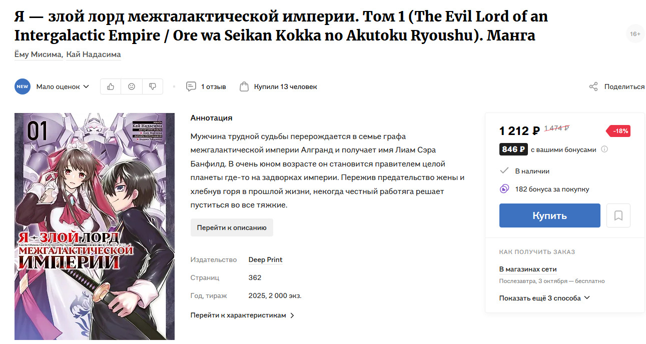 Частично выпущенная манга от издательства Комильфо