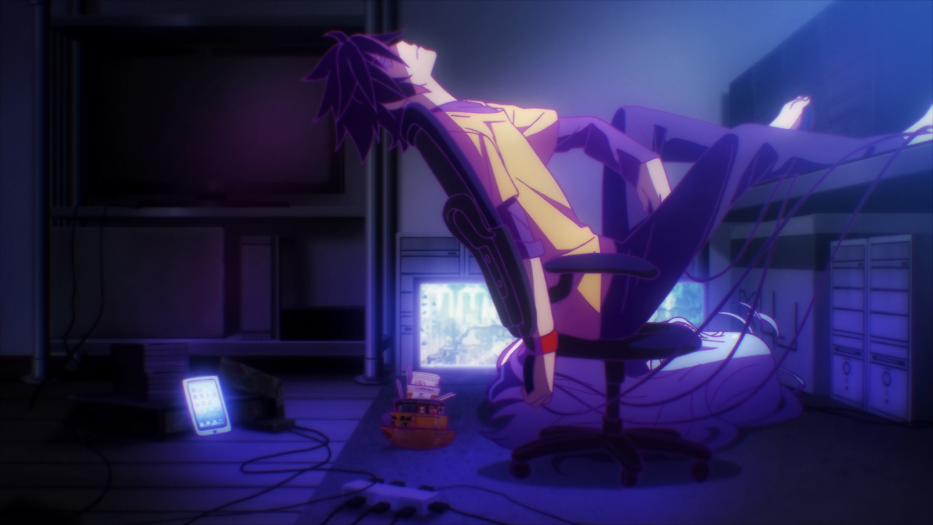Стиль Нет Игры Нет Жизни весьма узнаваем за счет своего стиля высокого контраста. Это аниме выделяется гипернасыщенной цветовой палитрой, игровыми неоновыми почти градиентными эффектами и спидлайнами, благодаря чему каждый кадр выглядит, как видеоигровая новелла. И все же непривыкший к такому явно любительскому стилю зритель может испытывать при просмотре сериала явный дискомфорт, поскольку зачастую такой набор неестественных цветов просто выжигает сетчатку.