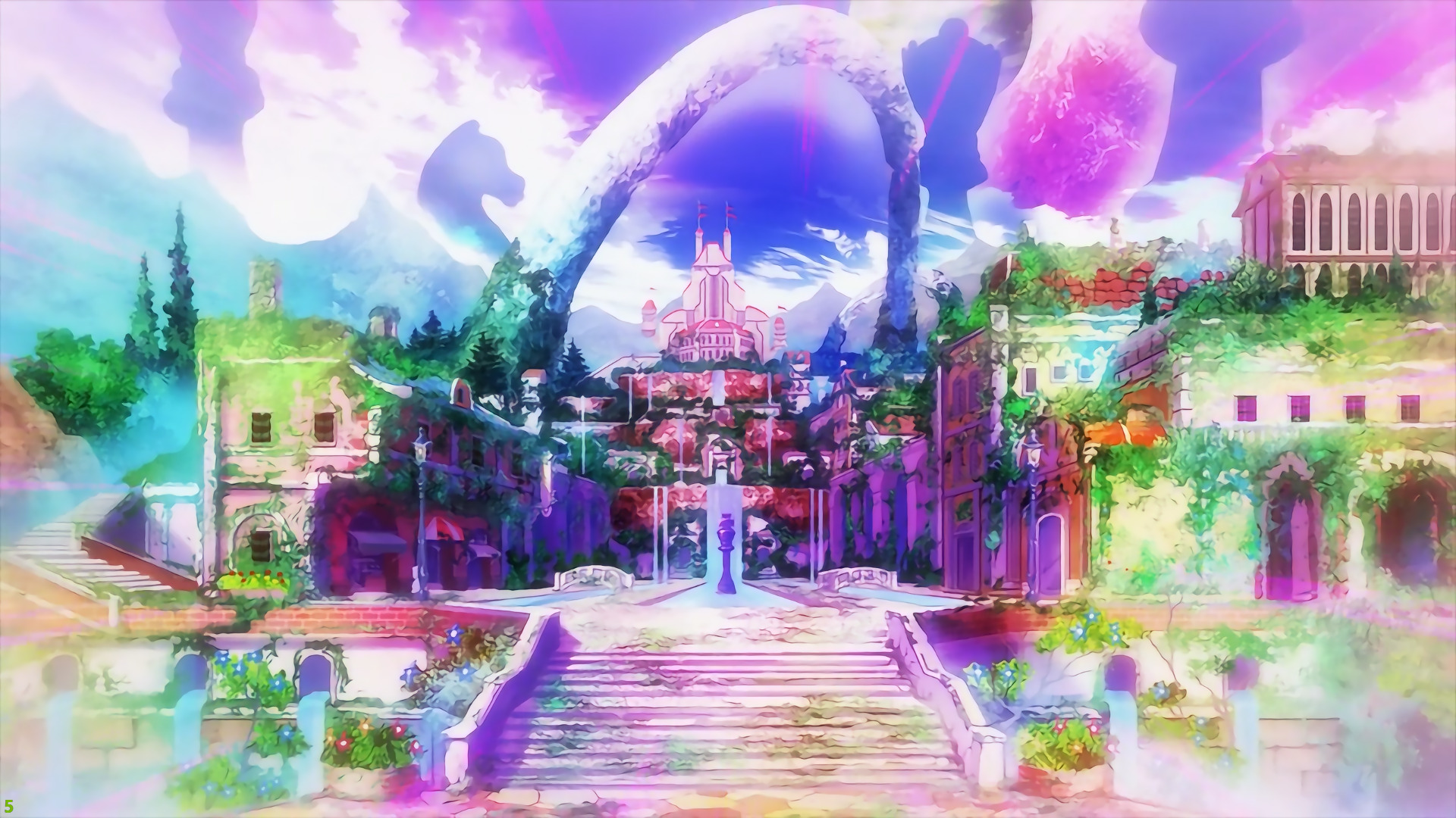 Аниме имеет весьма необычный и едкий визуальный стиль. Частенько на экране происходит ядовито-неестественно насыщенное цветовое безумие. Студия сознательно создала этот взрыв палитры, противоположный цветам унылой, серой реальности, подчёркивая тем самым искусственность мира, в который они в последствие попали.