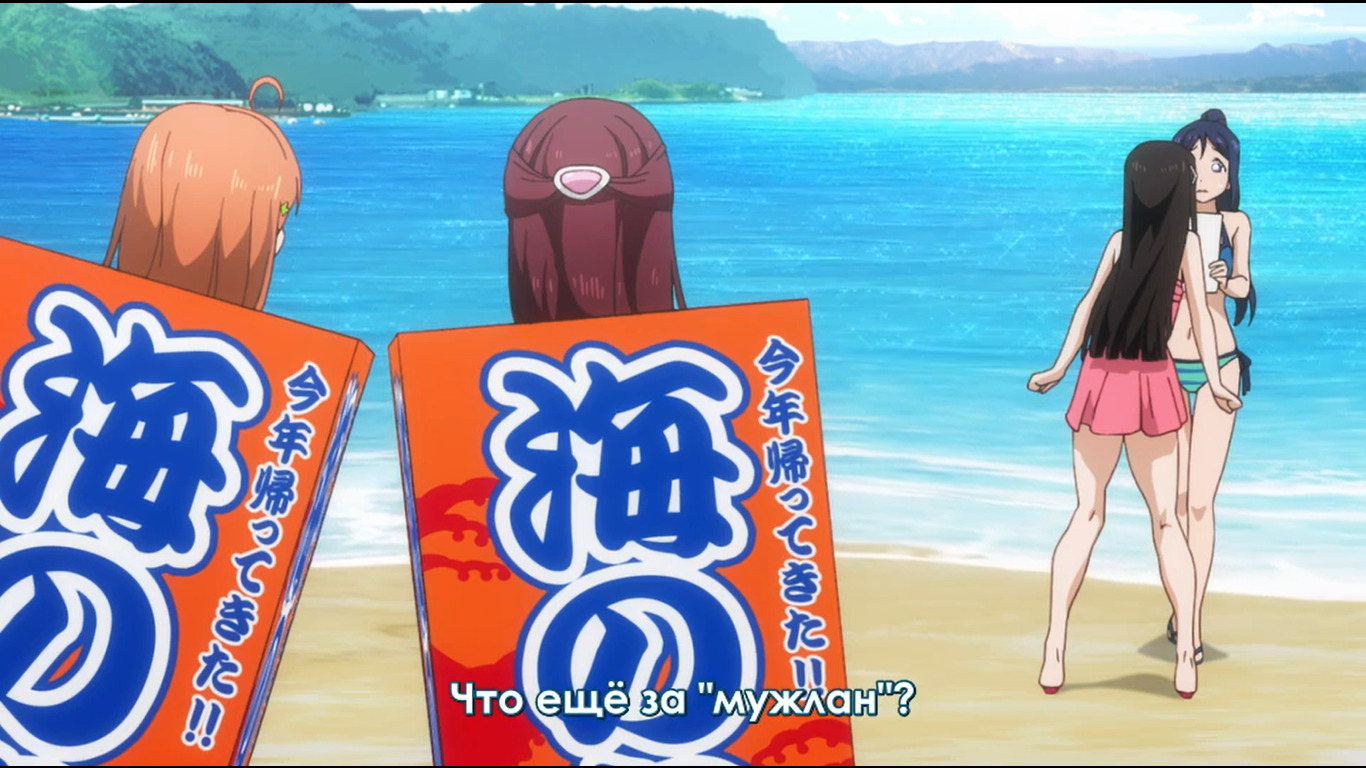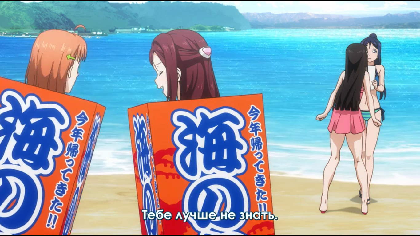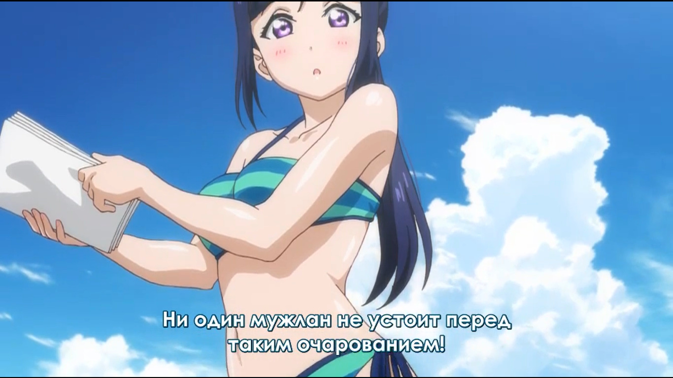 Пляжик, бикини, переодевания постоянные, ножки частенько в кадре мелькали, уровень божественности Ё-тян ещё больше вырос. Только, кажись, до них дошло, что рабурайбу выигрывать вот так сходу нельзя, и продолжение всего этого будет в следующем сезоне. Ну и в такую казалось бы винрарную серию умудрились запихать форсед. Сассуга! :З Ну прям нельзя было обойтись без продолжения форседов, ещё с Рико какая-то ерунда. Если у них есть время на переживания, пусть больше упражняются. А вот перевозбуждённая сейтокайчо просто супер няша, это 9 серий стоило ждать ради такой прелести. Хочу второй сезон. Алсо, великолепный ракурс, ну тут понятно, о чём я. Алсо 2, Акула няшная... забрал бы себе домой.