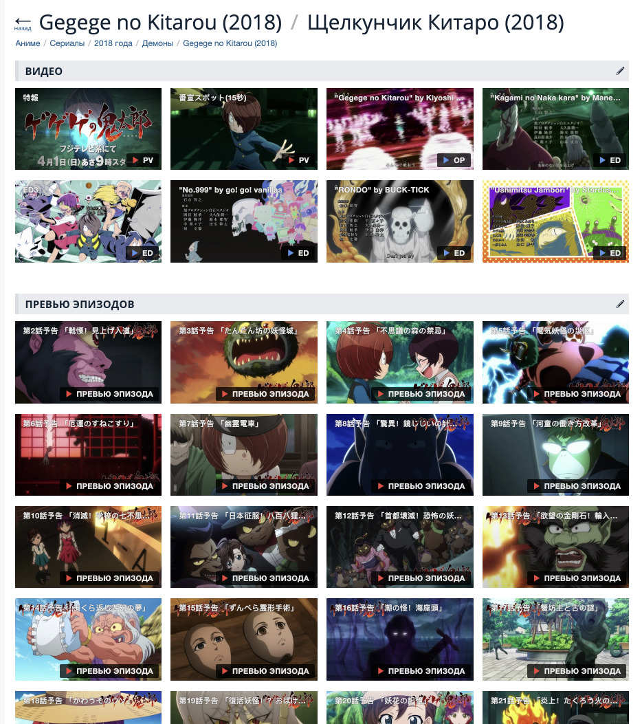 брошено, статус аниме больше автоматически не меняется насмотрю; - На странице видео у аниме превью эпизодов теперь отделены от остальных видео;