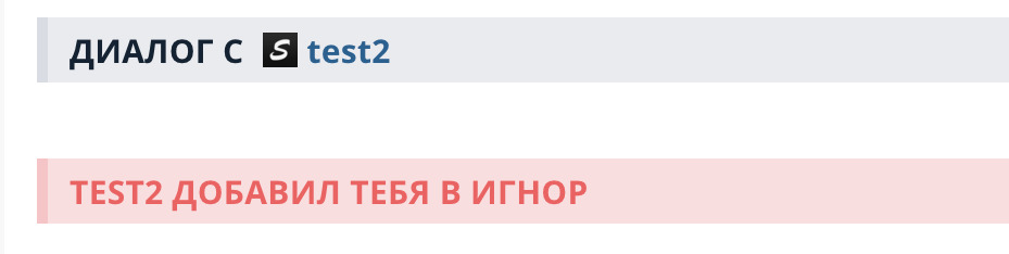 - Теперь на странице диалога отображается, что пользователь добавил тебя в игнор;